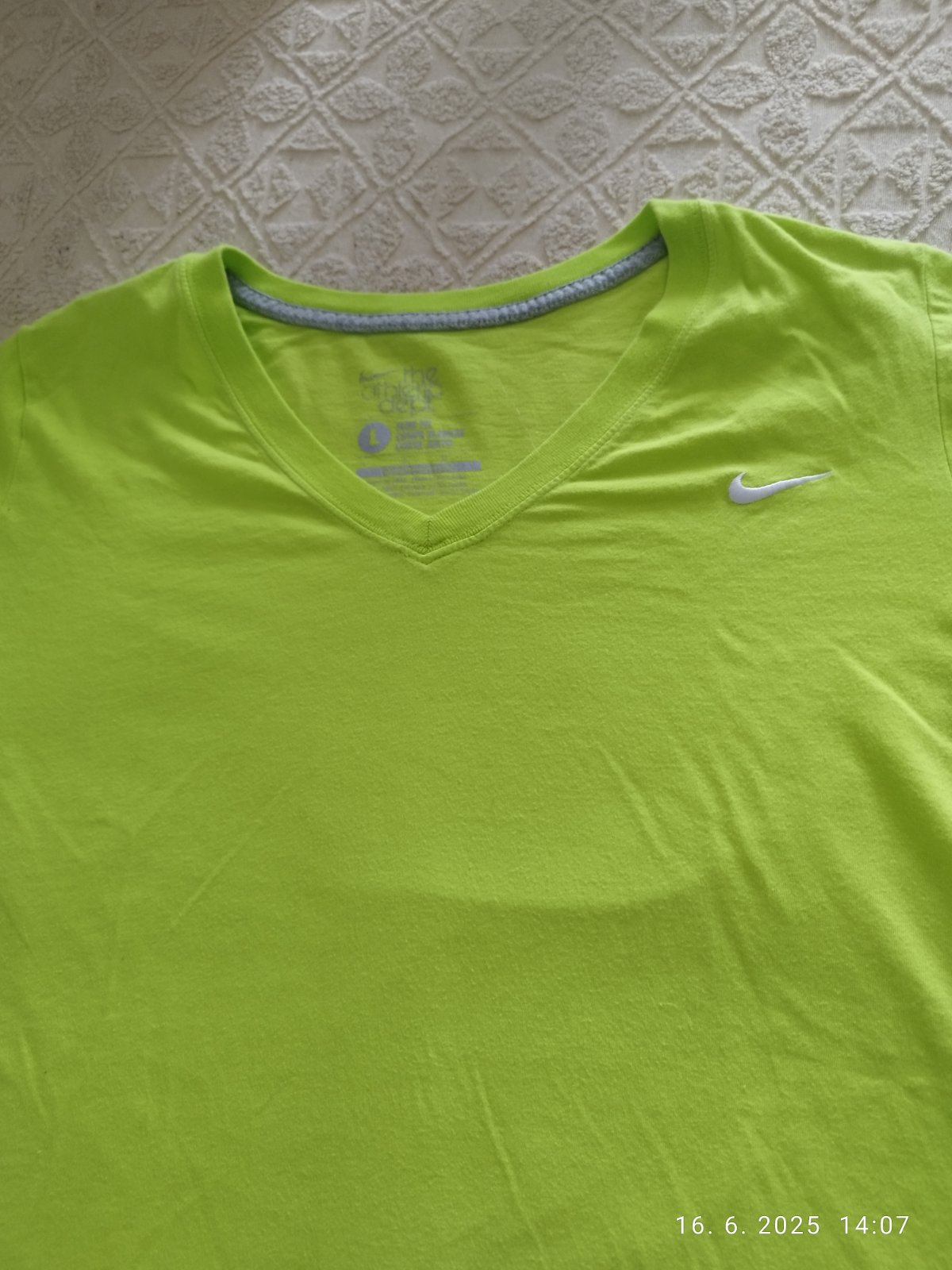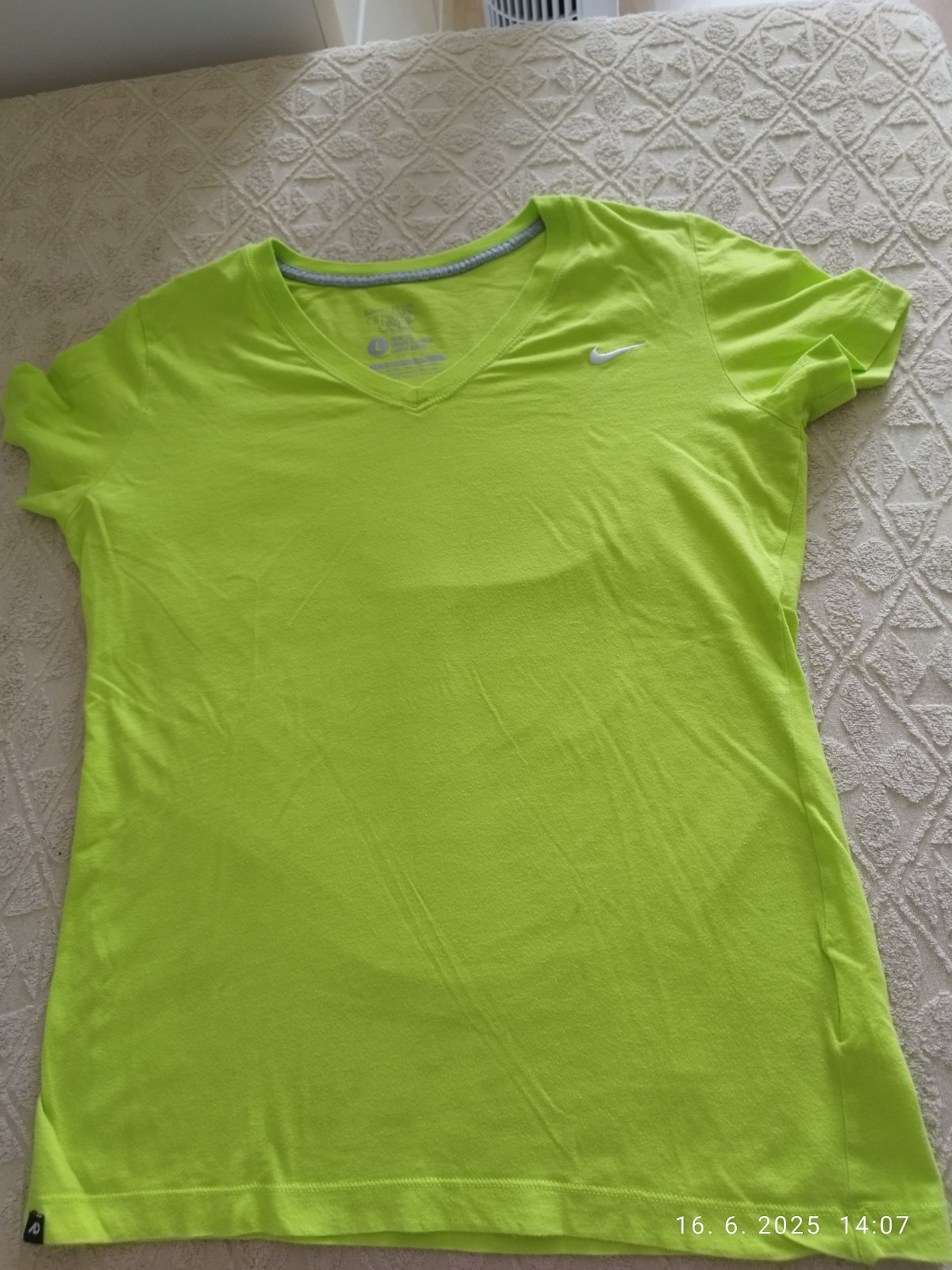 Tričko v dobrom stave, pekná limetkova farba. Dĺžka trička je 62 cm a šírka je 49 cm