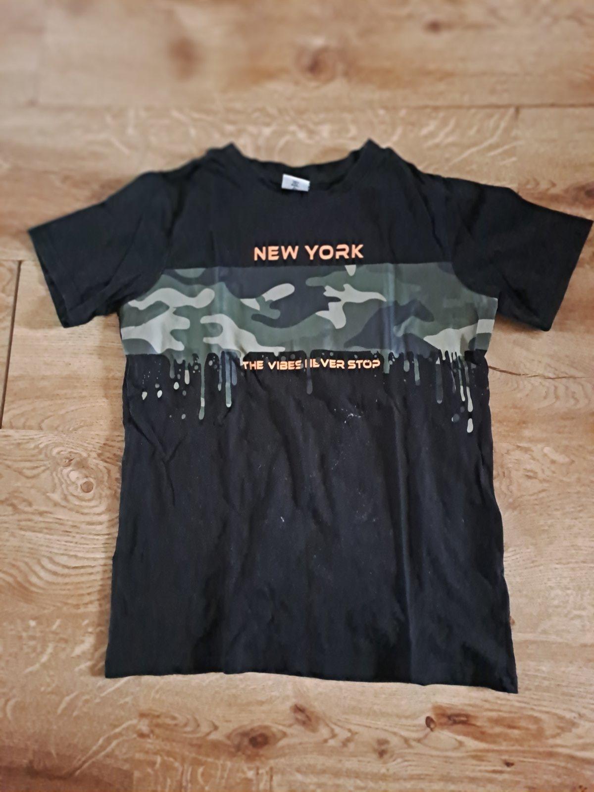 čierne tričko značka Chapter young, oranžové Destination veľkosť 146/152 cena spolu