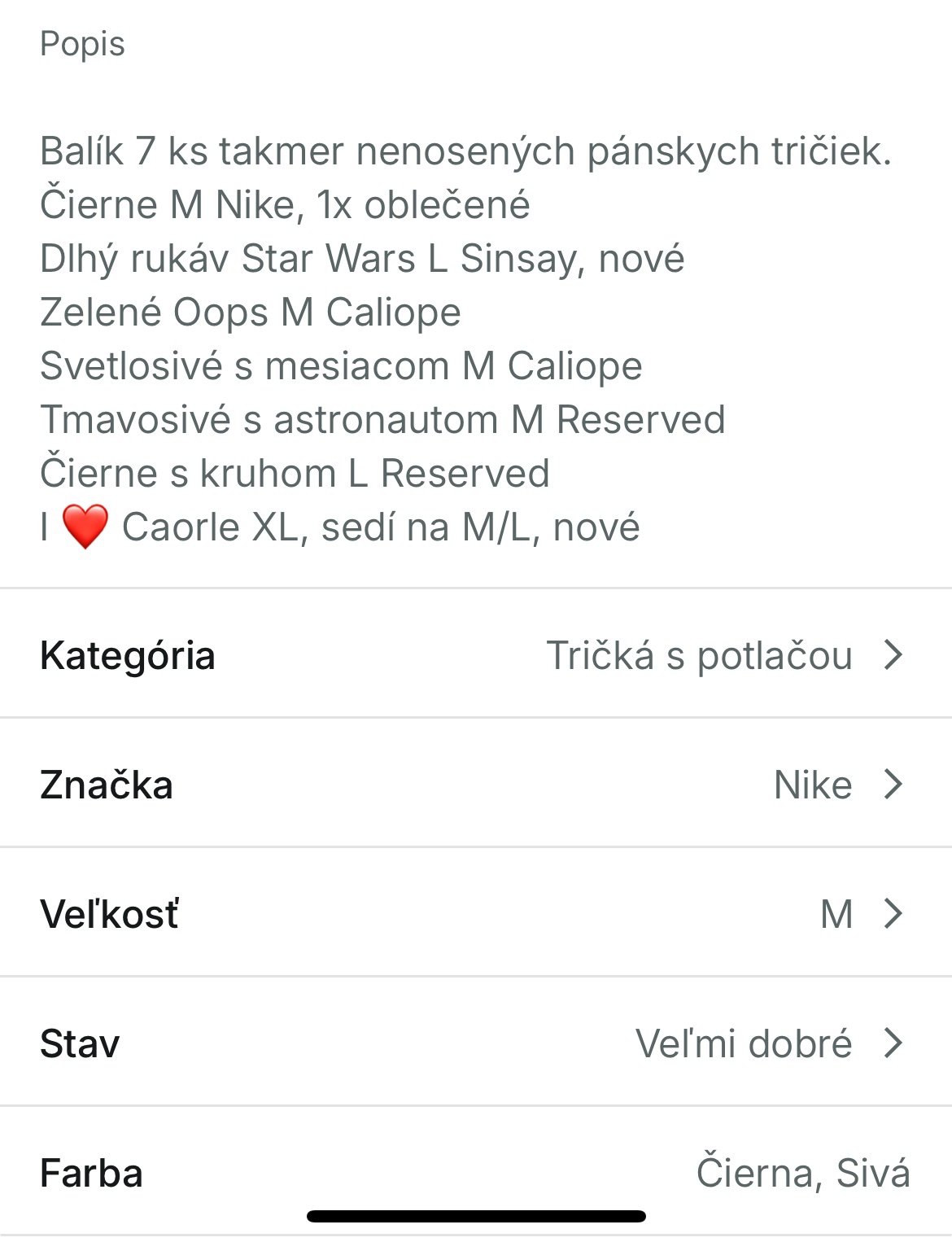 Balík 7 ks tričiek v top stave. Sedia na M.