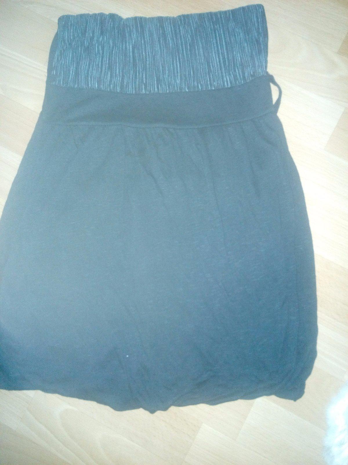 Predám ľahučké vzdušné čierne tričko bez ramienok, vpredu cez prsia šedé akoby nazberkané. š pod prsiami 35-44 cm. d 54 cm, dole podoraté gumičkou.nie je vyšedivené.