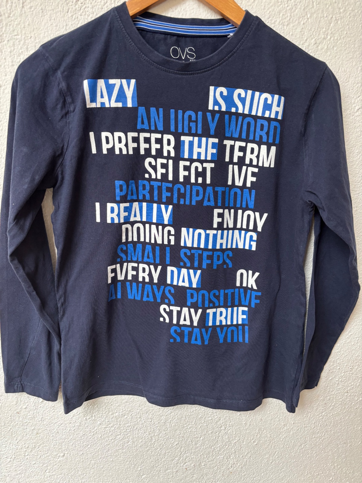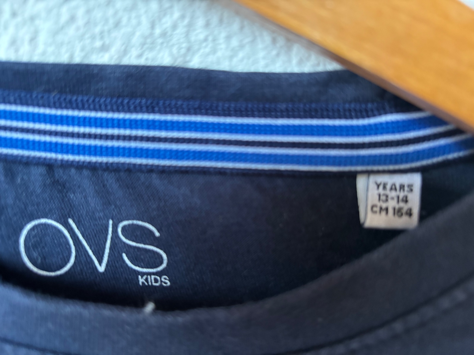 Pekné chalanské tričko zn. OVS, veľkosť 164. Celková dĺžka od ramena dole je 62cm, dĺžka rukáva od vrchného zošitia je 56 cm, od podpazušia 47 cm. Šírka 2x47 cm. Odfoteny fliacik od pera, plus neja...