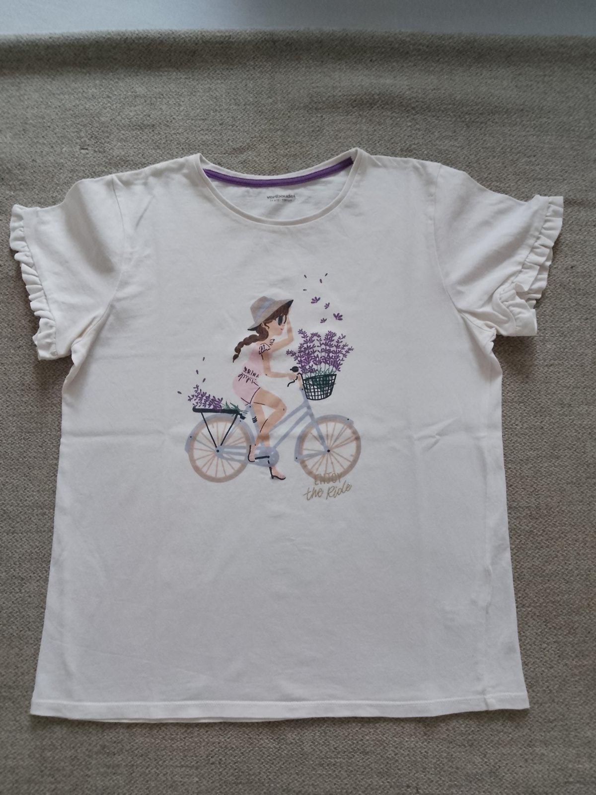 Dievčenské tričko s krátkym rukávom v super stave. Pár krát oblečené. Bez poškodenia, dier a fľakov. Rozmery - viď foto. Materiál je veľmi príjemný na nosenie, mäkká bavlna.