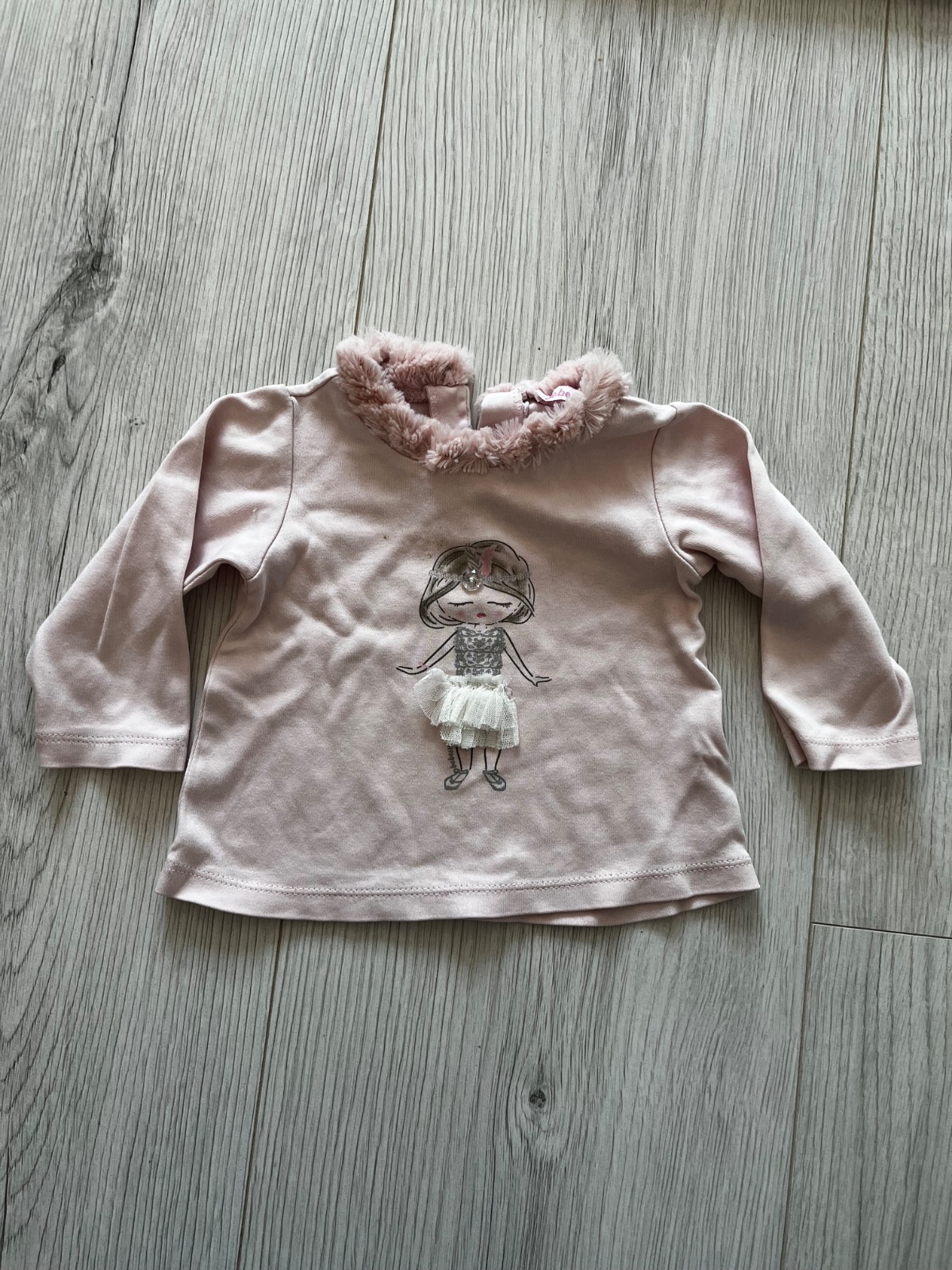 Predám bledoruzovy dlhorukavovy top s obrazkom dievčatka a kožušinkou okolo krku. Top je vzadu na zapínanie. Značka: Bebessi, veľkosť: 86 (12-18 mesiacov).