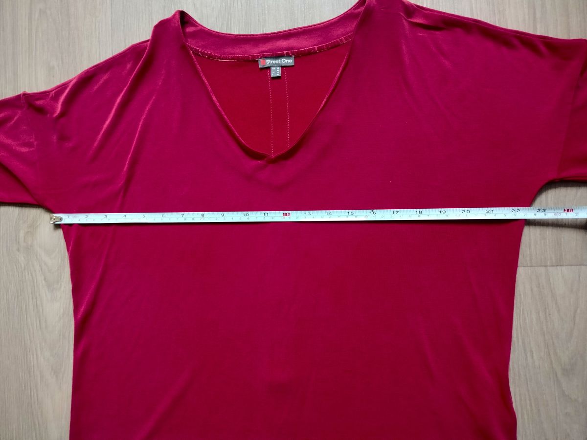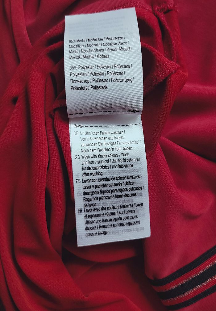 Zaujímavý top, je sýtočervenej farby, nepodarilo sa mi ju úplne vystihnúť. Vzadu je pás v kombinácii trblietavej červenej a čiernej. Materiál je chladivý, príjemný, padavý. Je voľnejšieho strihu, písaná 38, ale skôr sedí na 40/42. V top stave bez poškodení.