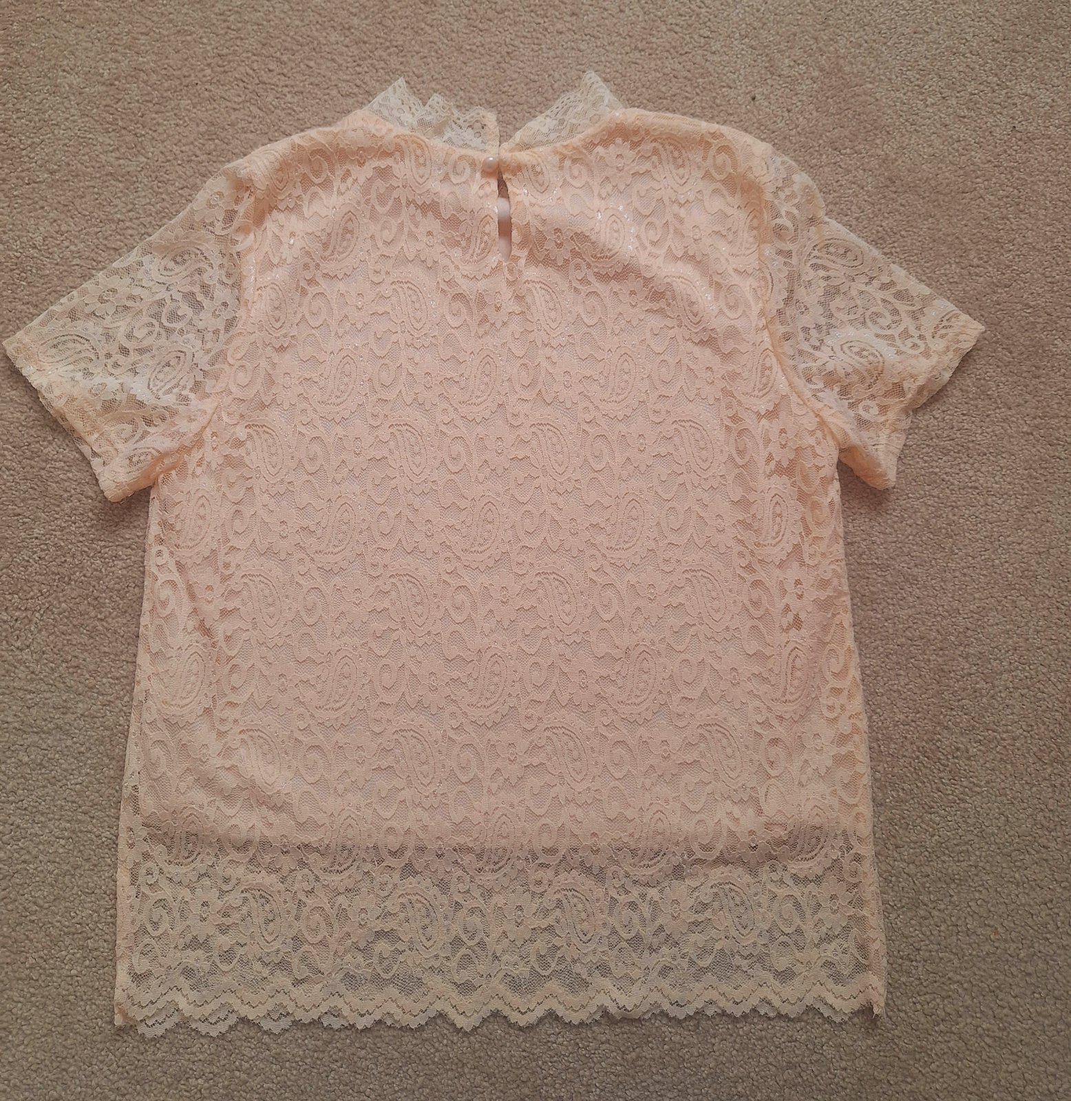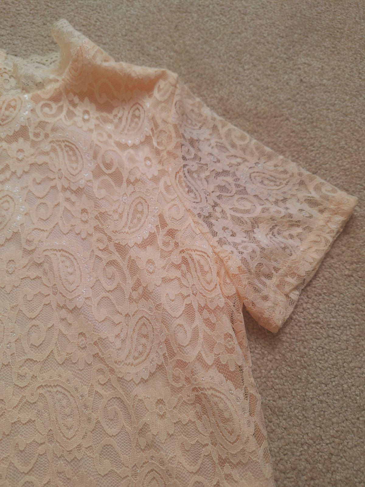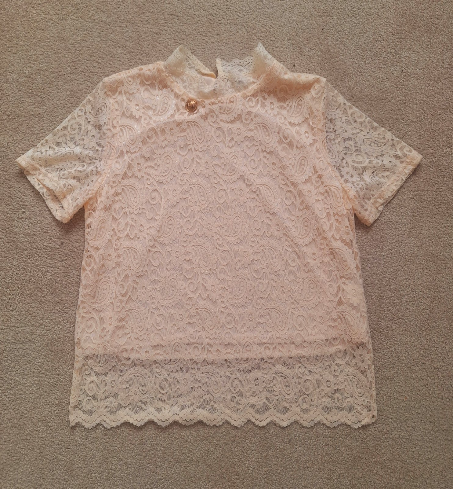 Jemný, krásny romantický top k sukni aj nohaviciam. Podsite, neprehľadný. Nový, top stav. Jemná marhuľová farba.