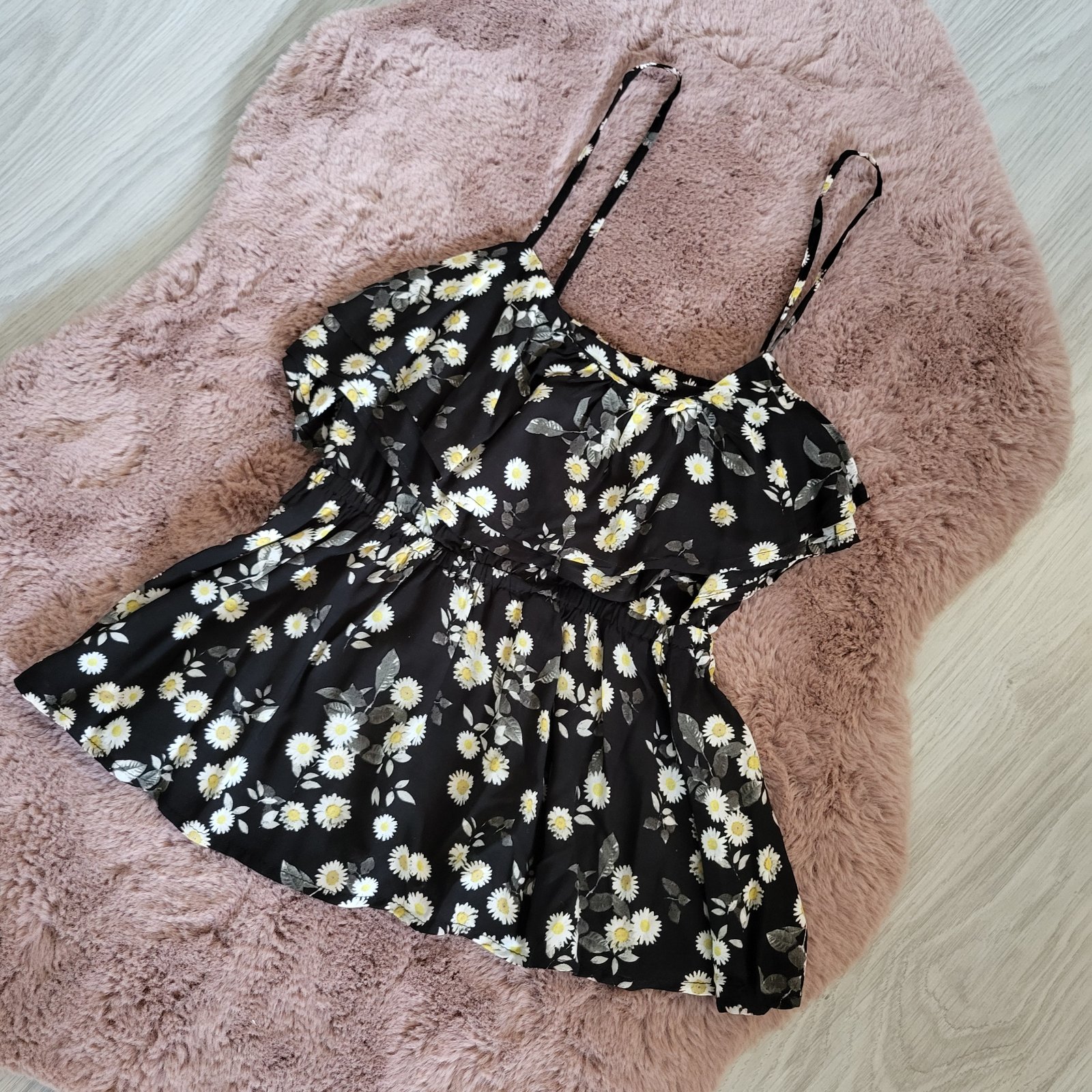 Krásny topik, lahky letny material, sedi na veľkosť XS aj S. Rozmery sú nafotene.