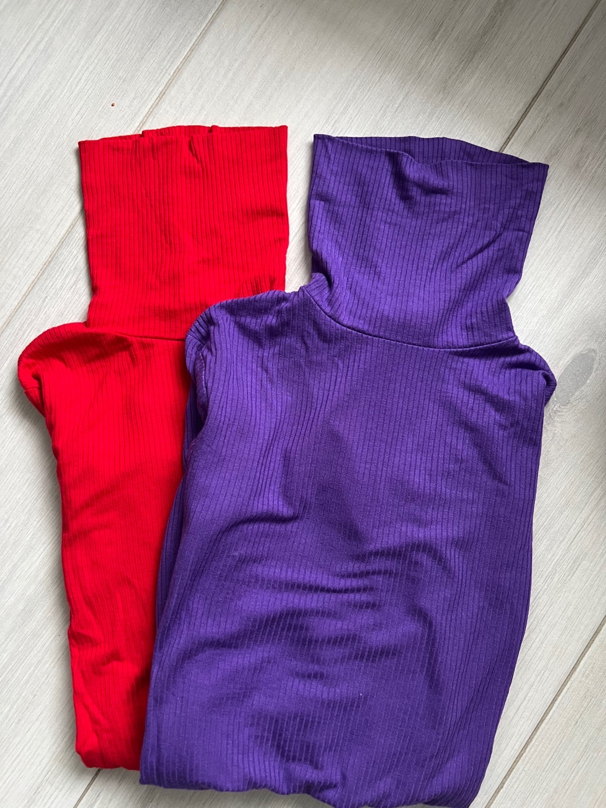 predám 2 roláky zn.amisu (červený a fialový),veľkosť xs,sedí aj xxs,oba boli nosené asi po 3x,super na telo,elastické,šírka cez prsia vkľude 2x34 cm,v prípade potreby povolí,dĺžka od ramena 56 cm,dĺžka rukáva od pleca 59 cm,cena za oba 7€+pošta,NEVYMIEŇAM!