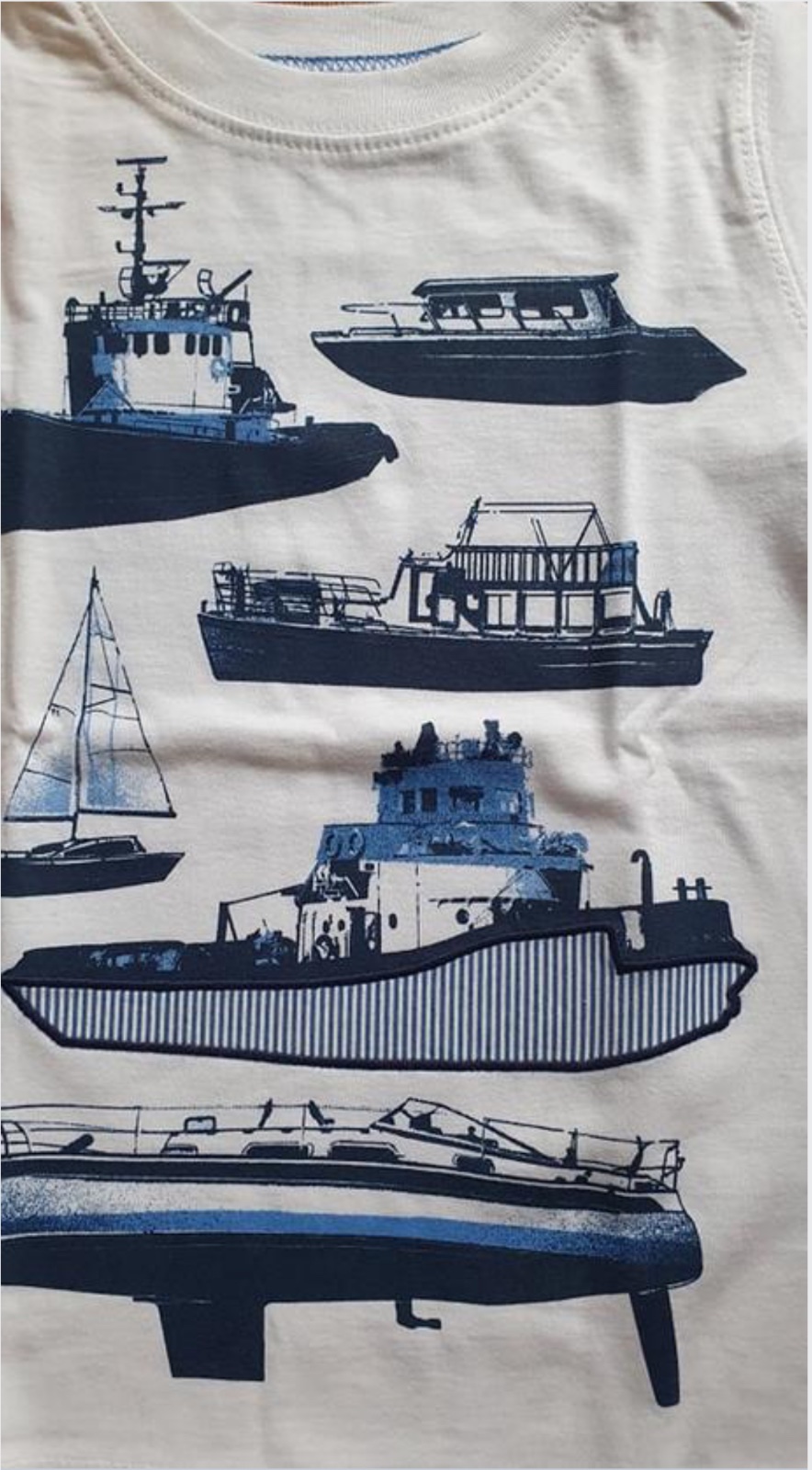 Krásne biele tričko s vyšívanými lodičkami.