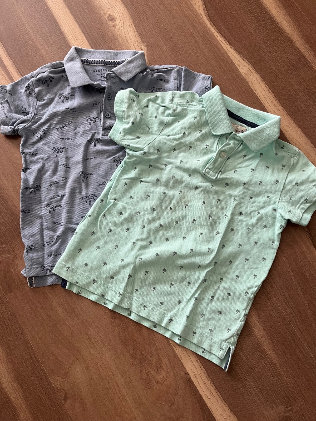 Každé 1x oblečené, nechcel nosiť tento štýl tričiek, jedno z H&M (110-116), druhé z Reserved (122), ale veľkostne sú rovnaké, sedia na 116. Letný motív s palmami.
