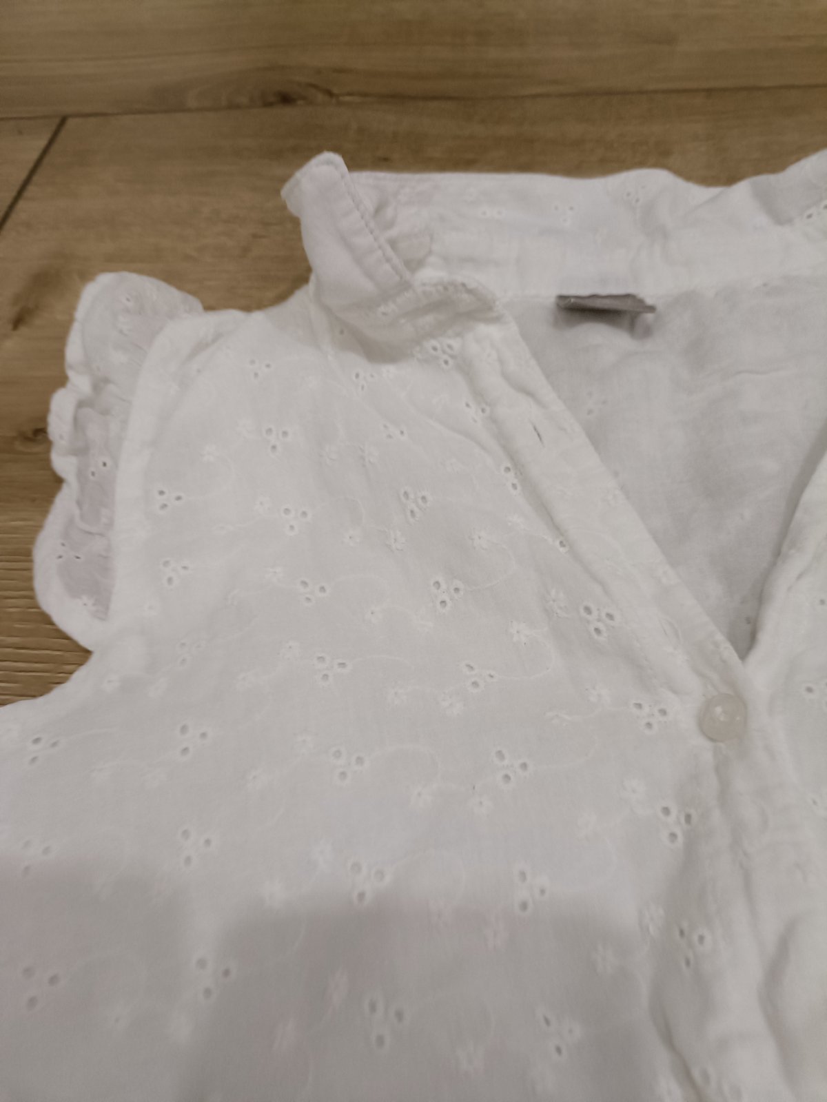 Madeirova biela blúzka Pepco,žlté tričko na ramienka,pašijový top HM,krásne tričko s vyšívanými kvietkami a tylovymi rukávmi,134 .super stav predaj spolu 5e