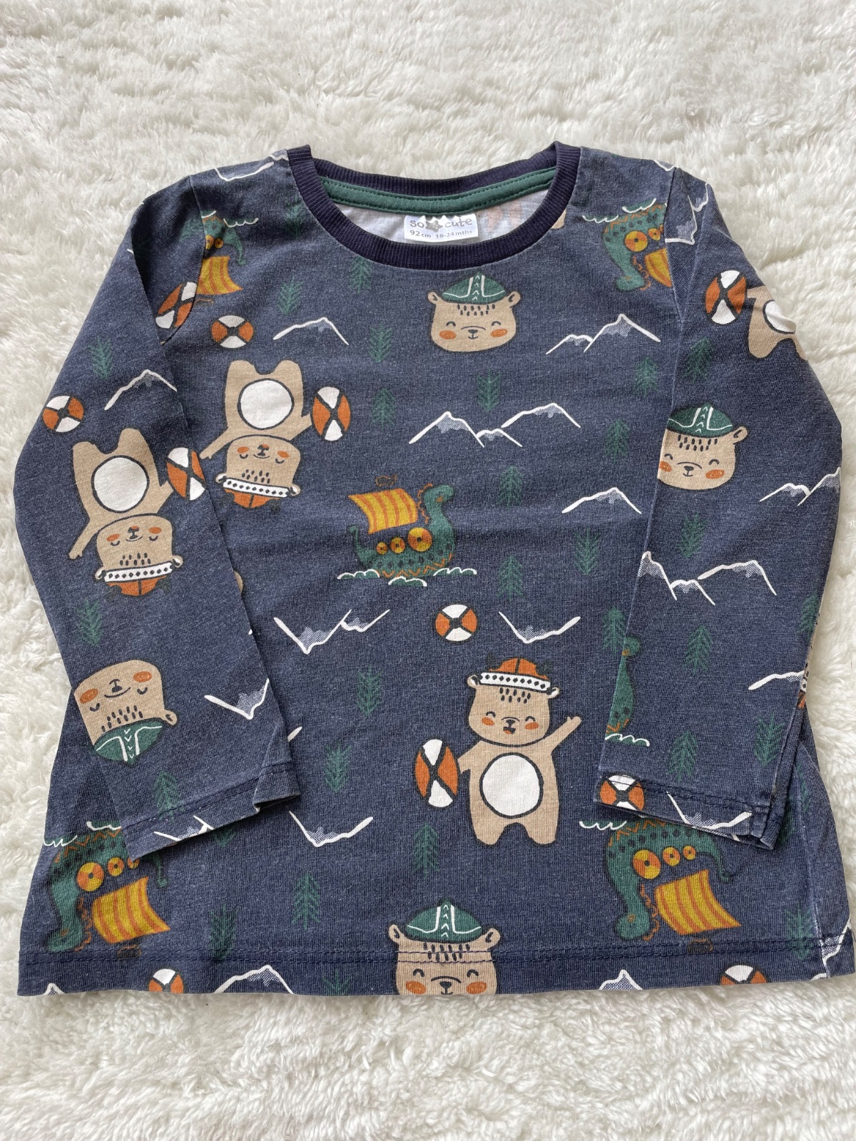 Bavlnene tricka s dlhym rukavom, jedno bezove, druhe tmavomodre, malo nosene, napriek tomu sa na modrom vyprala farba. Inak bez poskodeni.