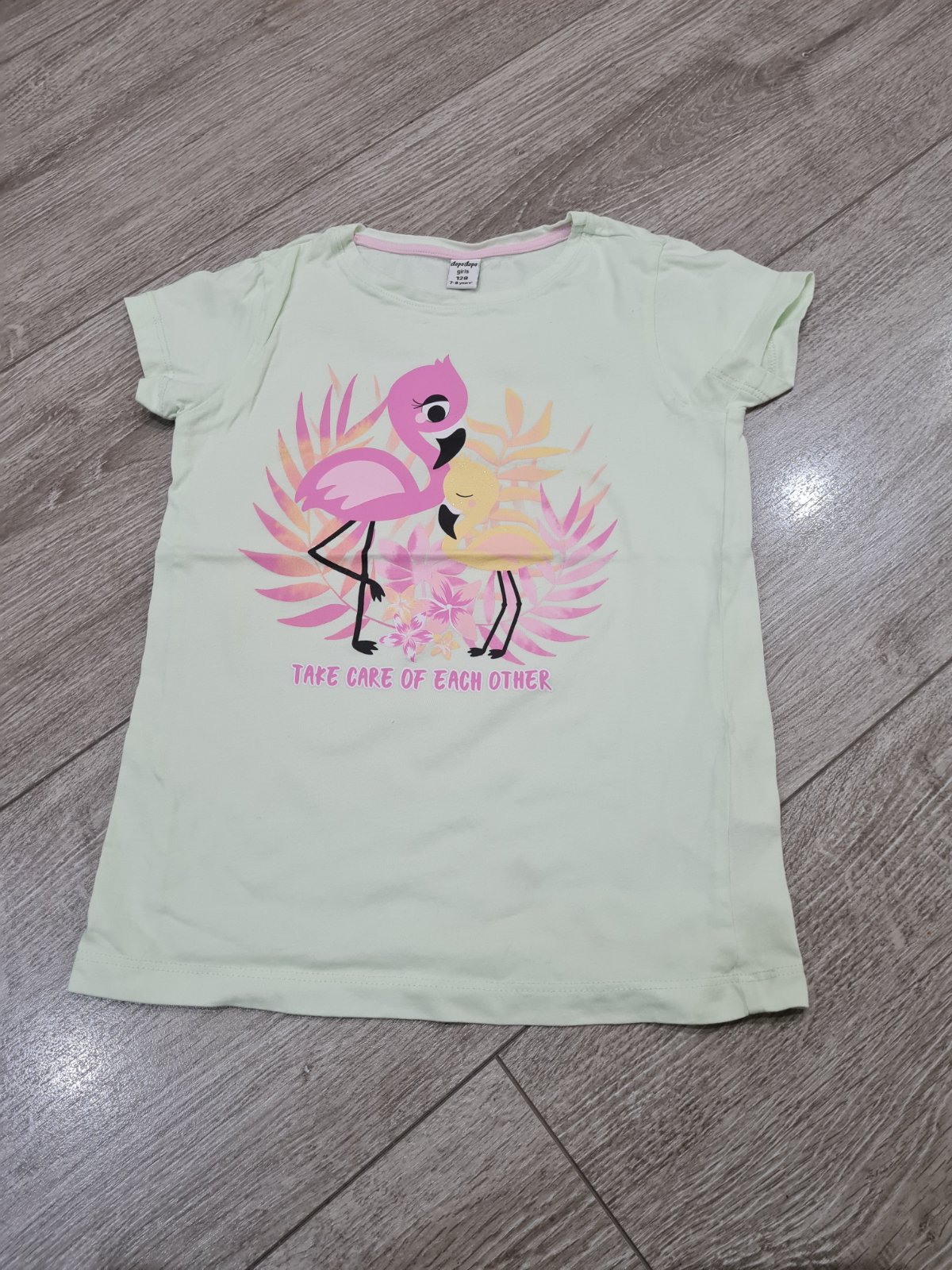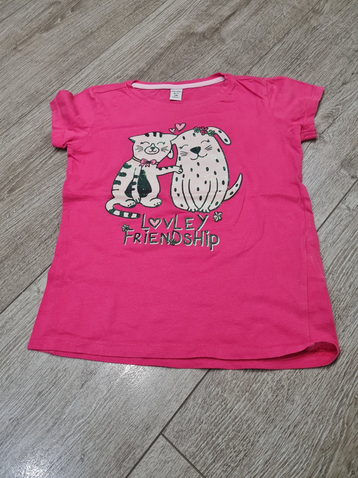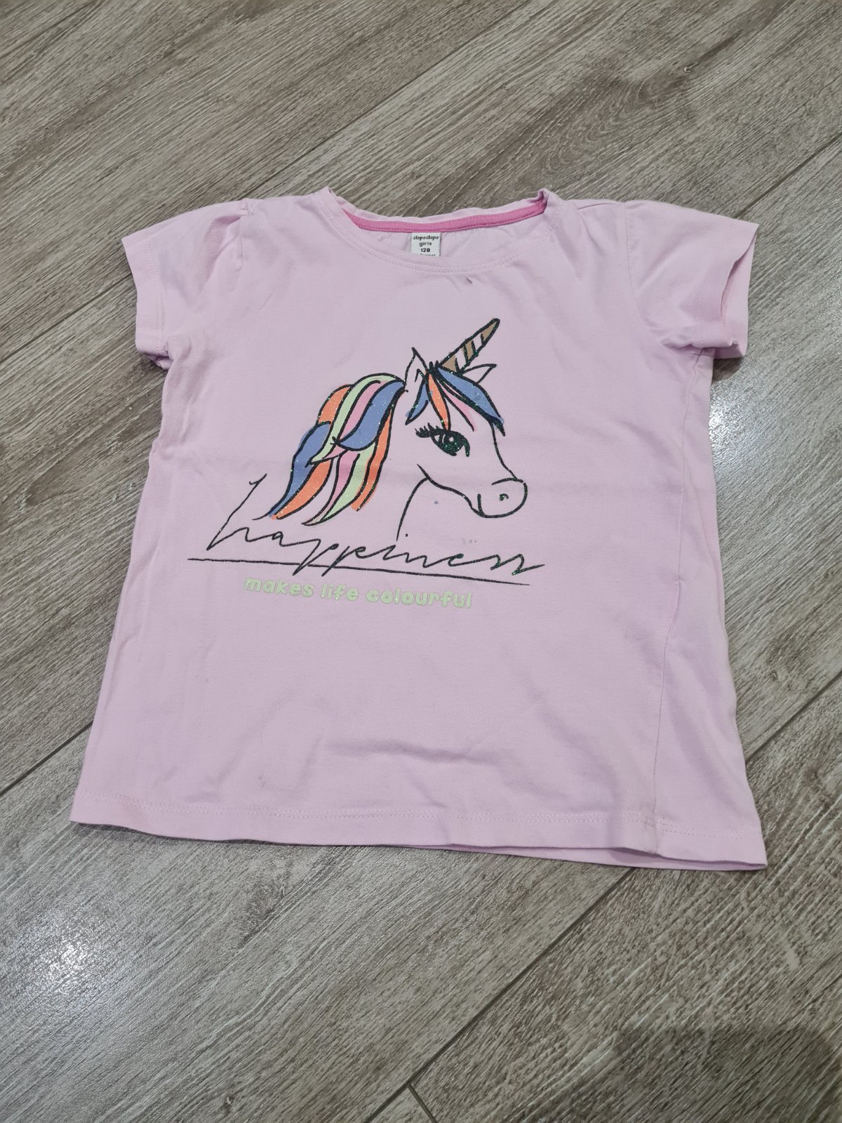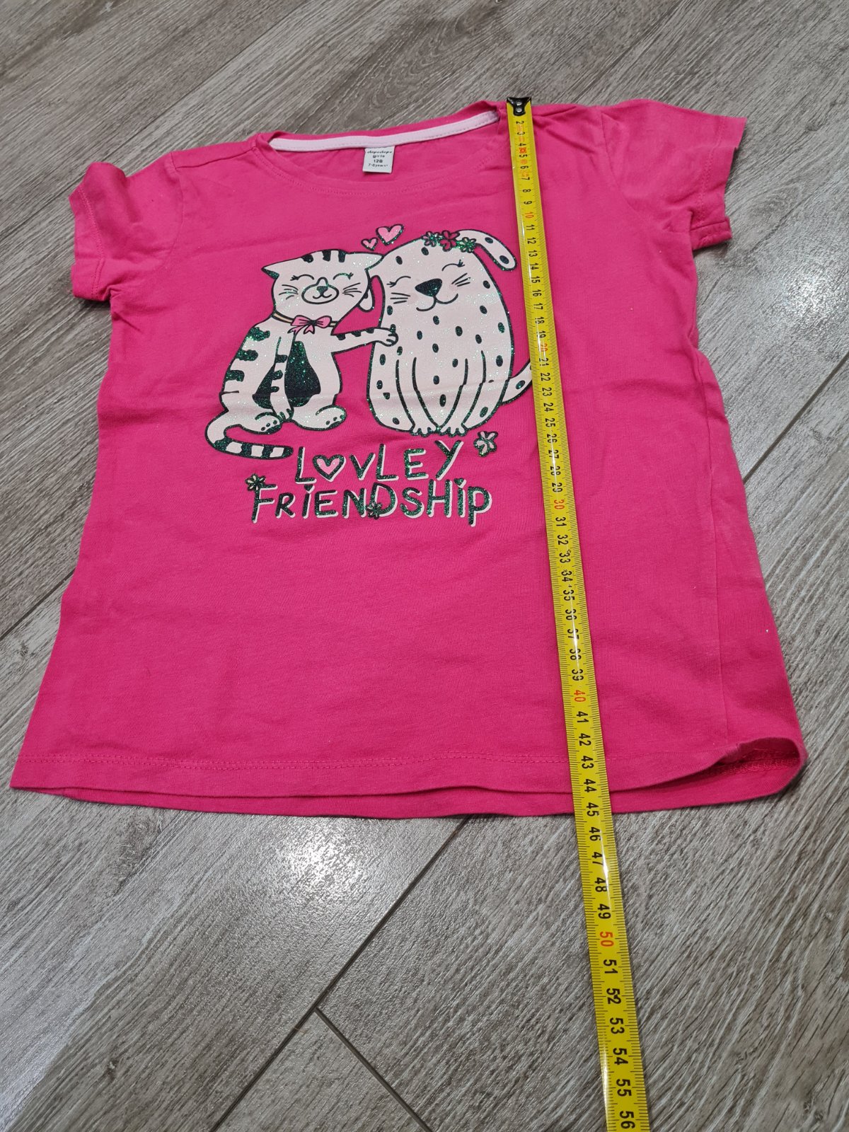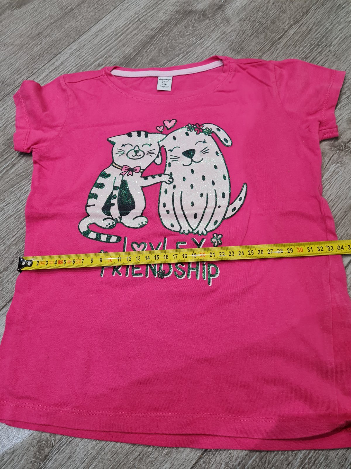 PTričko s krátkym rukávom ružové 128 druhé grátis ma 2 malé dierky v zadu na chrbte,, cena 1,20euro