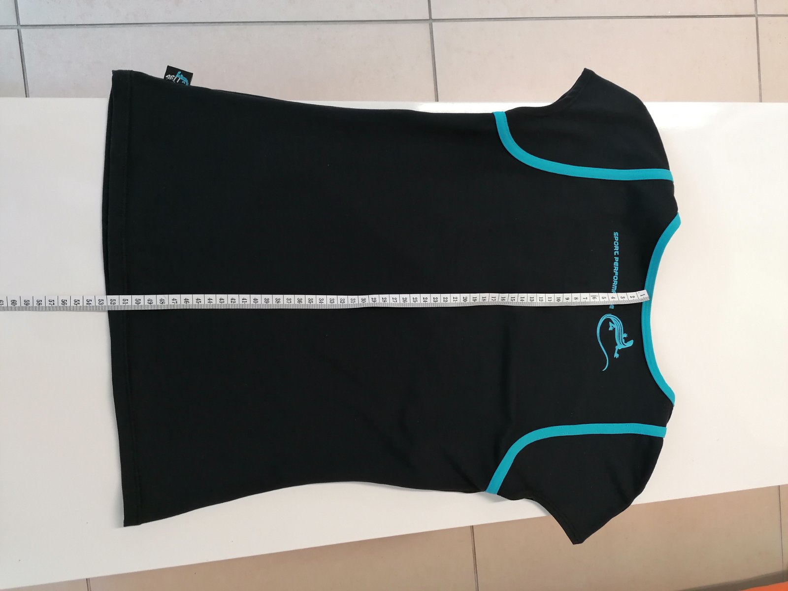 Uzasny ZARA predlzeny top s kratkym rukavom a okruhlym golierom v ciernej farbe s vyraznymi gombickami na prednej strane,pruzny material so strukturou Zlozenie : 100% POLYESTER Velkost M ,sedi na...