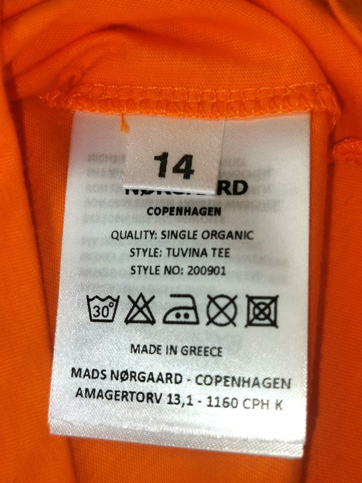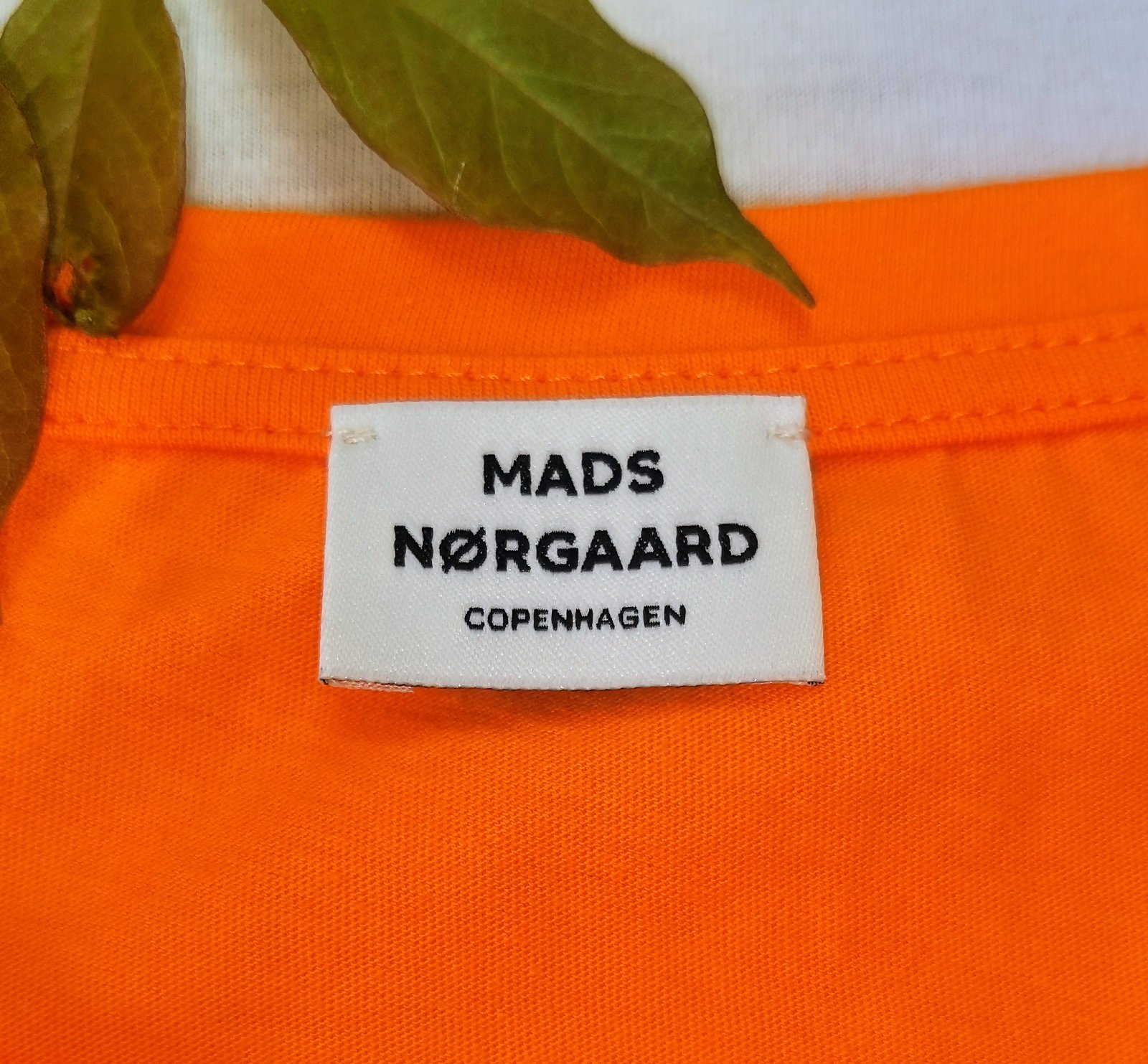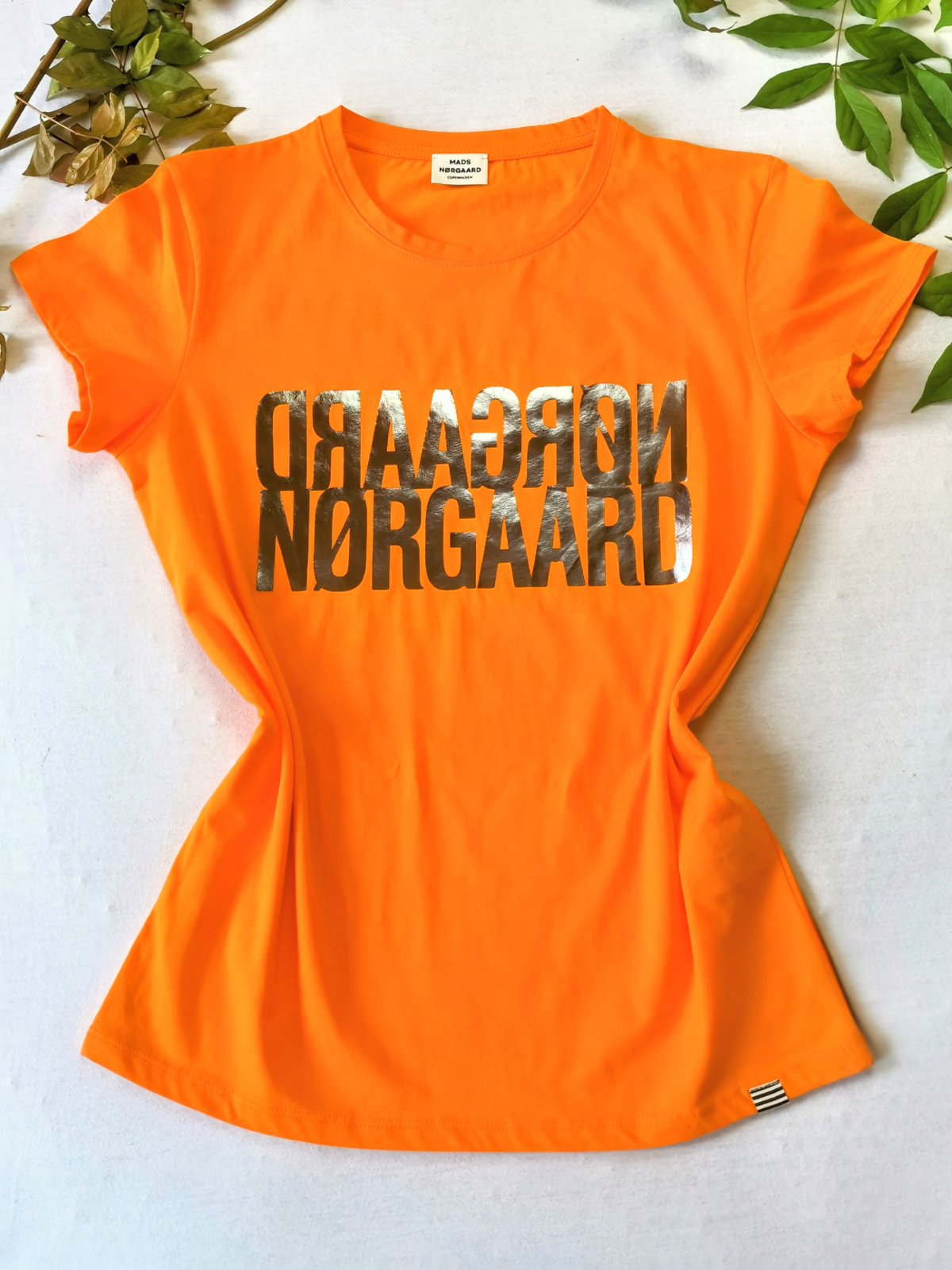 Ponúkam nové štýlové tričko Mads Nørgaard s krátkym rukávom v pútavej cool oranžovej farbe.