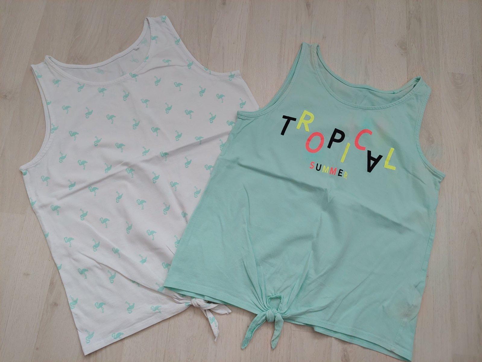 Krásne pastelovozelené tielko na horúce letné dni, zdobené flitrami, zaujímavý zadný diel. Dĺžka 55 cm, šírka 43 cm pod pazuchami. Dvojčíslo 158/164. SUPER STAV! pošta nie je v cene! Pri odbere 2 a...