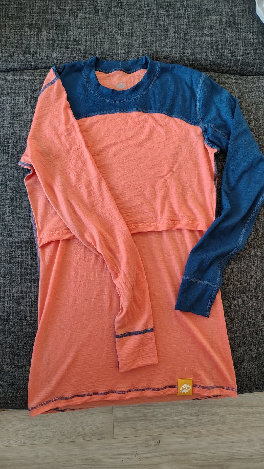 Dve tričká, alebo svetriky s dlhým rukavom. Lososove tričko písaná velkost XL-XXL, ale podla mna je to také S-M, dlžka chrbta 57cm, šírka v páse 38cm, rukáv meraný od krku 69cm, mierne elastické. ...