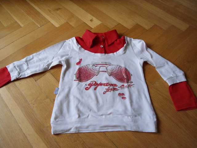 zachovale tricko, velkost 122 nosene mojou malou, je zachovale vsimla som si hore chybaju dva kamienku a dole nad patentom je mala bleda bodka ale inak pekne