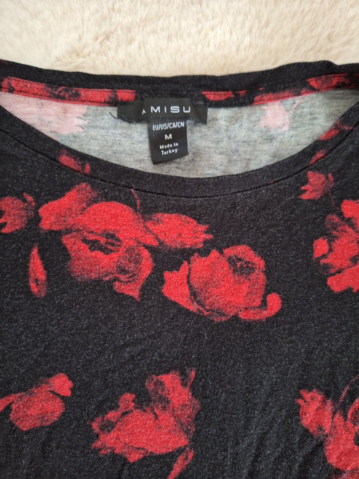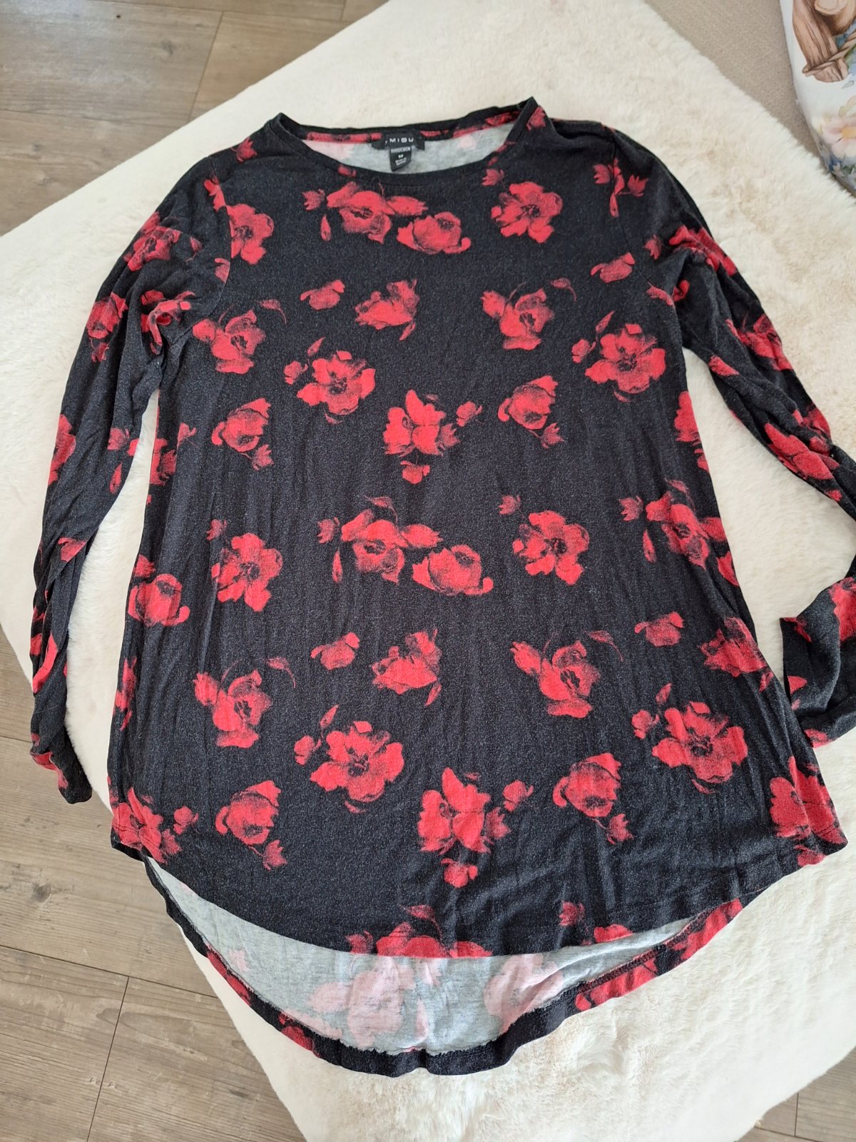 Par krát oblecene predĺžené tričko s krásnymi červenými kvetmi