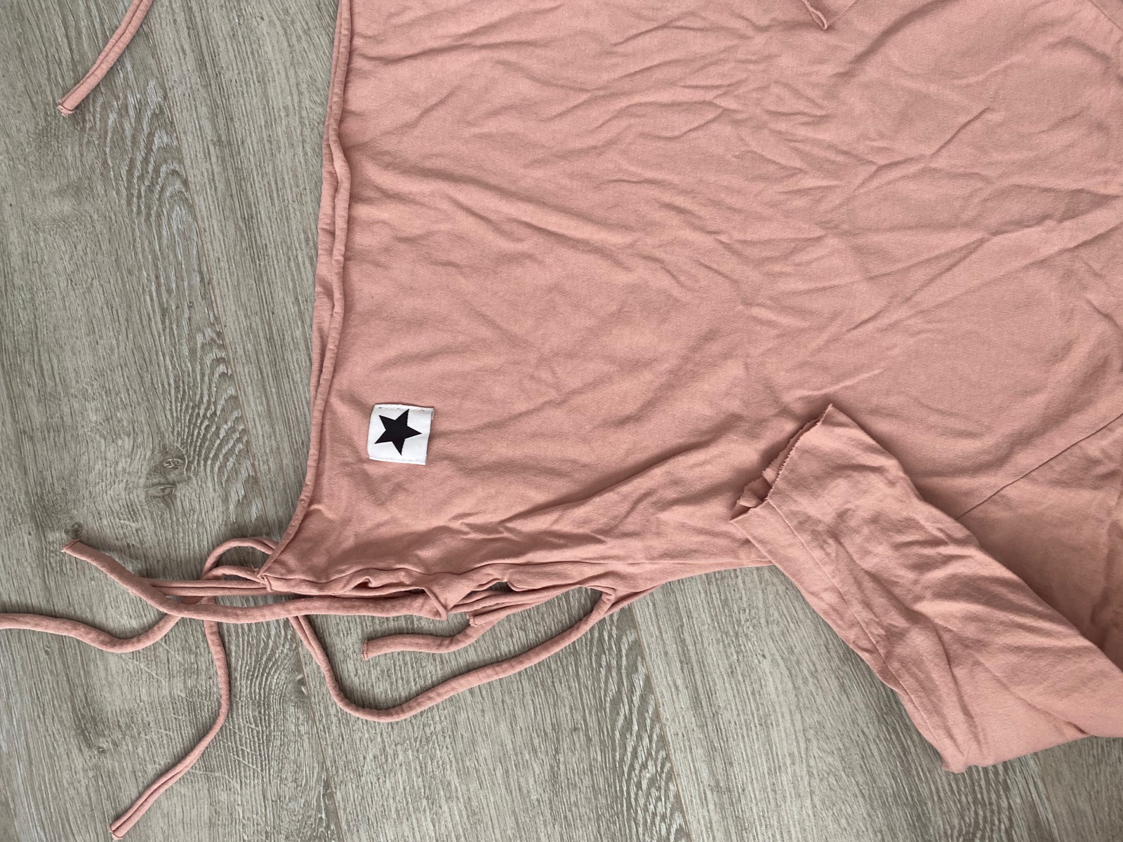 Kupovane nove. Velkost 134-140. Nosene, ale bez poskodeni. Prijemny material 97%bavlna, 3%elastan. Odporucam na kupu. Cena je uvedena bez postovneho. Rozmery: - dlzka 49cm - sirka merana pod ramena...