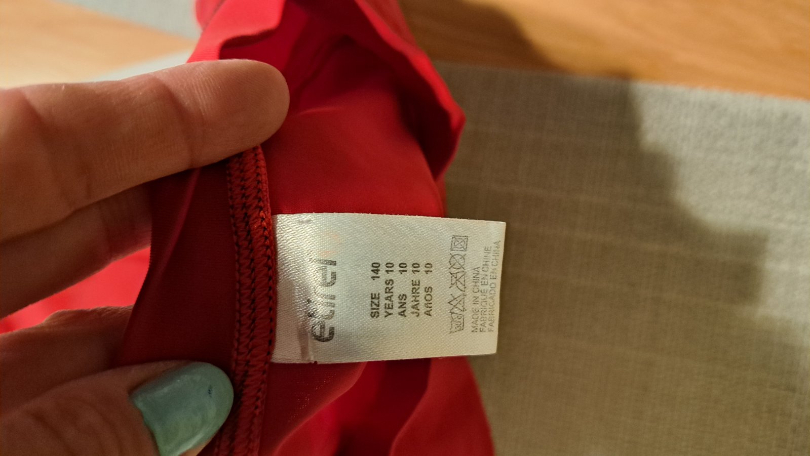 Predam tricko 140velkost ale podla mna tak 134 proti slnku-UV.(vynosite od 128 max do 140)Kvalitny a malo pouzite.Ma nejaku ochrannu memb.pre UV