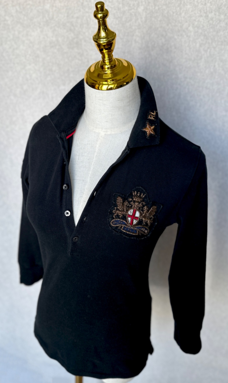 Klasická bavlnená polokošeľa Ralph Lauren v čiernej farbe s ikonickými nášivkami značky - v tomto prípade unikátna je aj na golieri. Veľmi pekný nadčasový kúsok do šatníka. Zapínanie na gombíky, na spodku po bokoch sú malé rozparky, zadný diel o 1 cm dlhší ako predný. 97% bavlna, 3% elastan. Minimálne použitie, v super stave, bez poškodení.