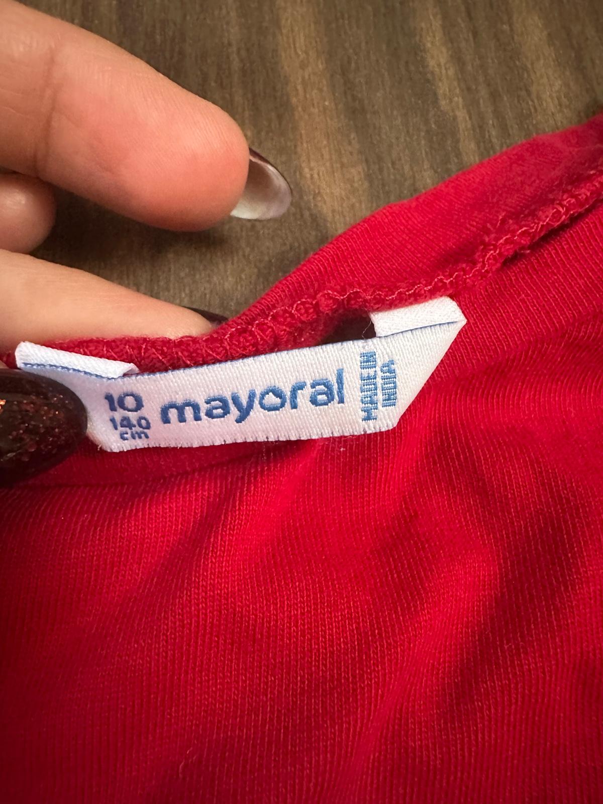 Tričko Mayoral bavlnené námornícke červená, len oprane ,dostali sme do daru ale nasadila veľkosť veľ. Je písaná 140 ,ale je menšie skôr 128-134 , je krátke a širšie inak krásne detaily,