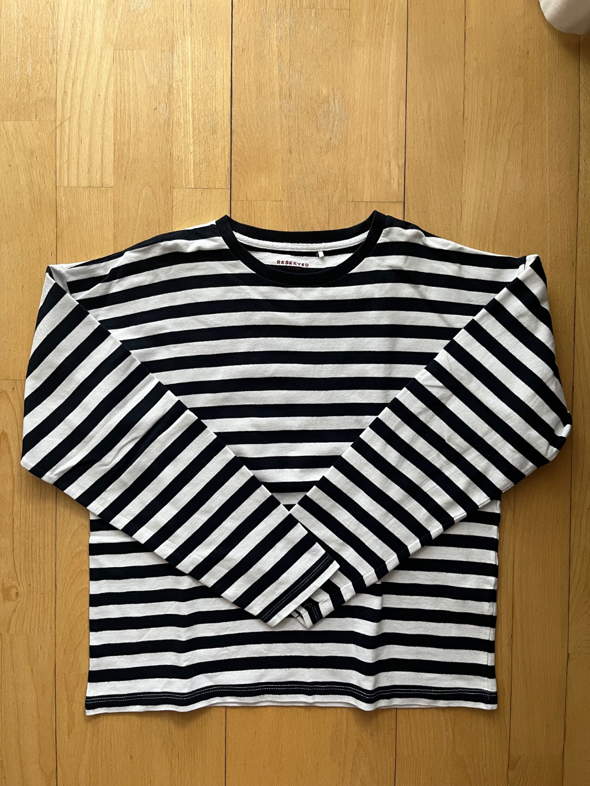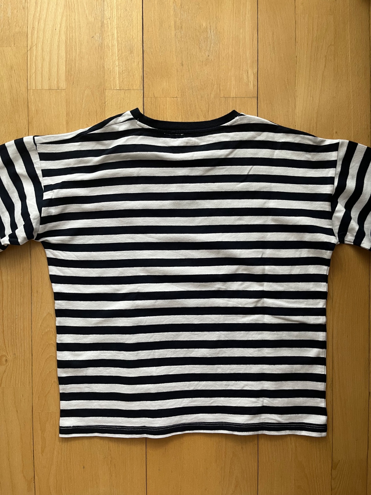 Predam bavlnene tricko s dlhym rukavom, pruzkovane bielo-tm. modre, znacka Reserved, velkost 164, velmi pekne, super stav, par krat oblecene. Zadna dlzka od krku 58 cm, sirka pod pazuchami 52 cm, dlzka rukava od krku 72 cm (širší volny strih). BA - Ruzinov.