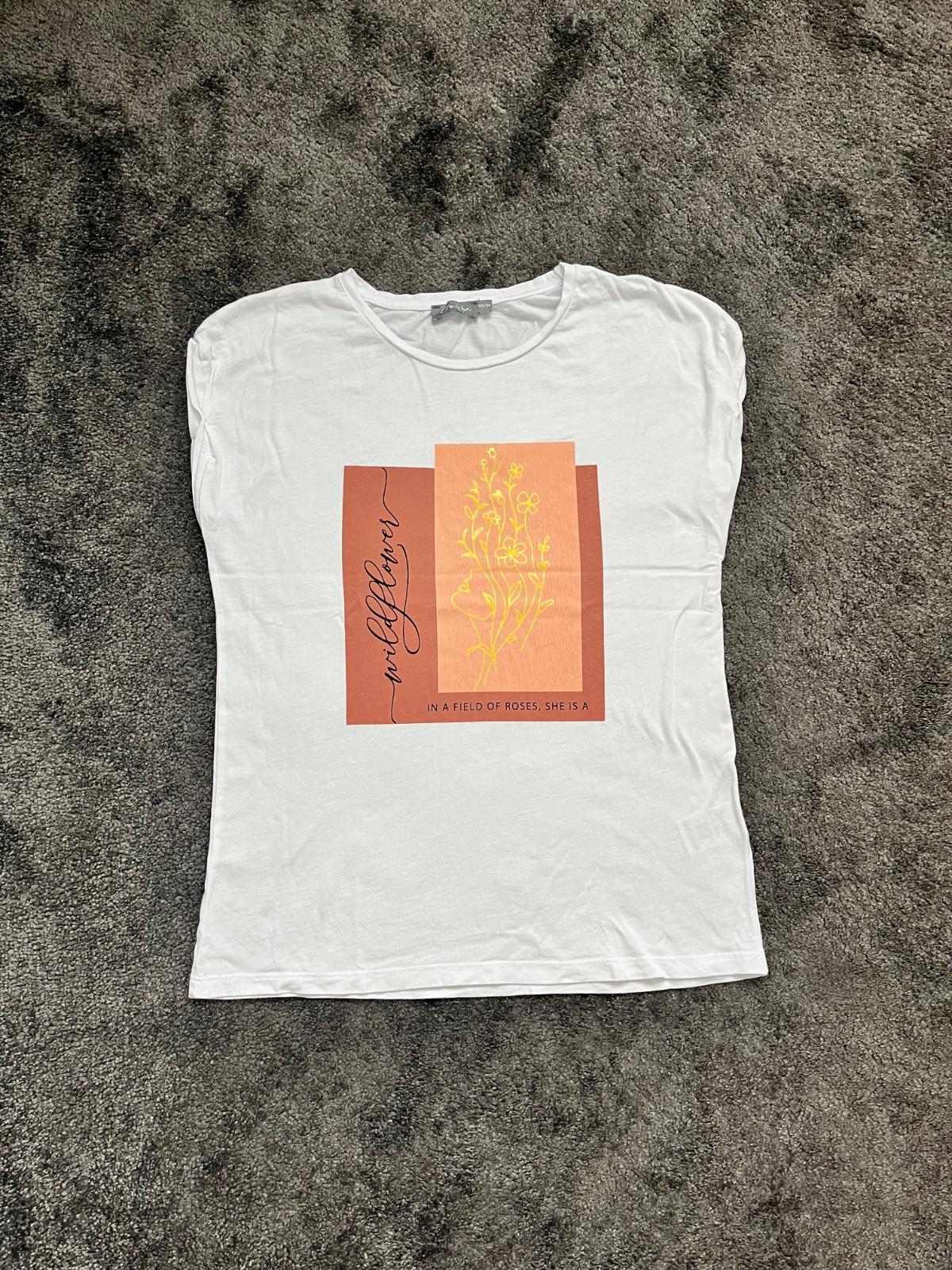 Ľahké tričko na leto, malicko vzaté. Veľkosť 34/36. Dĺžka vpredu 50cm, vzadu 55cm, plecia 44cm, pod pazuchami 43cm, písané M ale lepšie je ak je voľnejšie na S/XS.