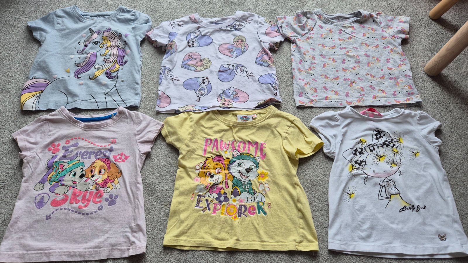 Posuvam 6ks tričiek s kratkym rukavom - 2ks labkova patrola, 2ks jednorožce, babika a Frozen(Elsa).