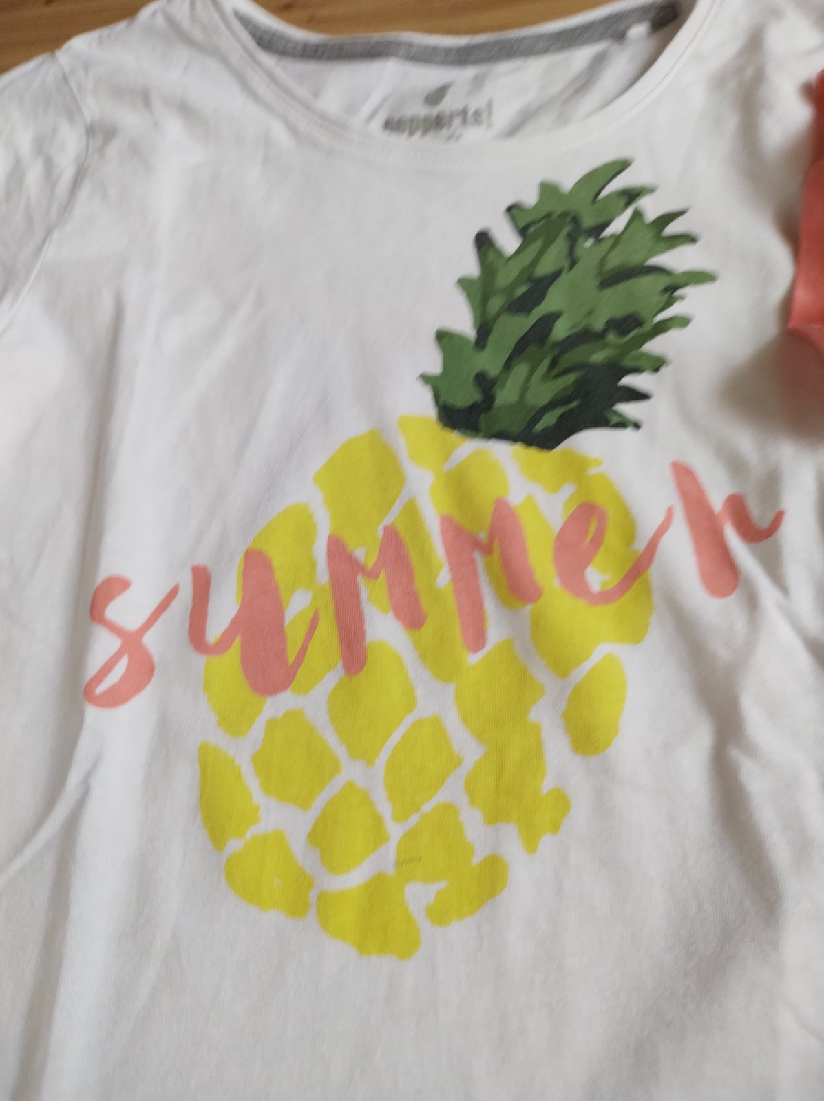 Ponúkam na predaj tričká z. Pepperts :Šírka 2 x 42 cm, dĺžka 51 cm, 100% BA. Na bielom tričku-ananáse je perom popísaná čiara. Ružové bez poškodení. Cena za obe. Predávam len spolu.