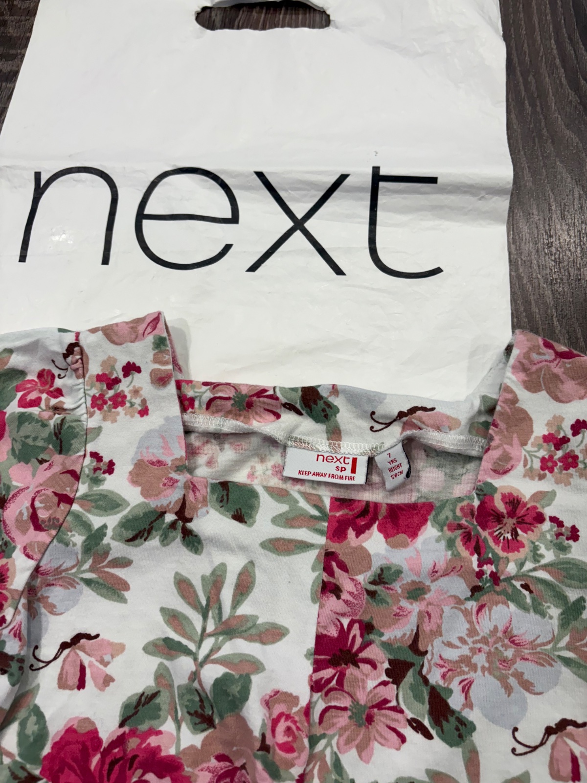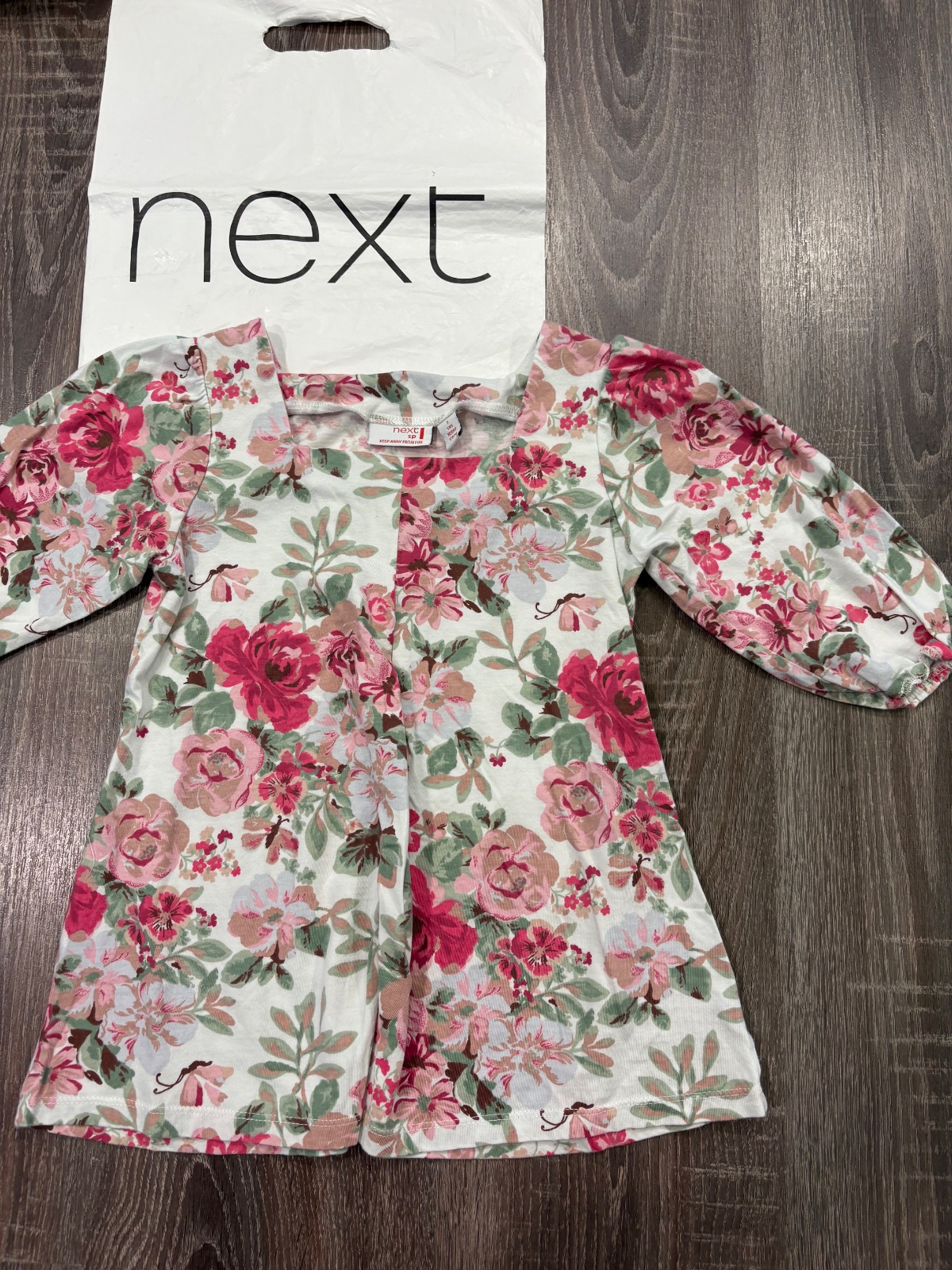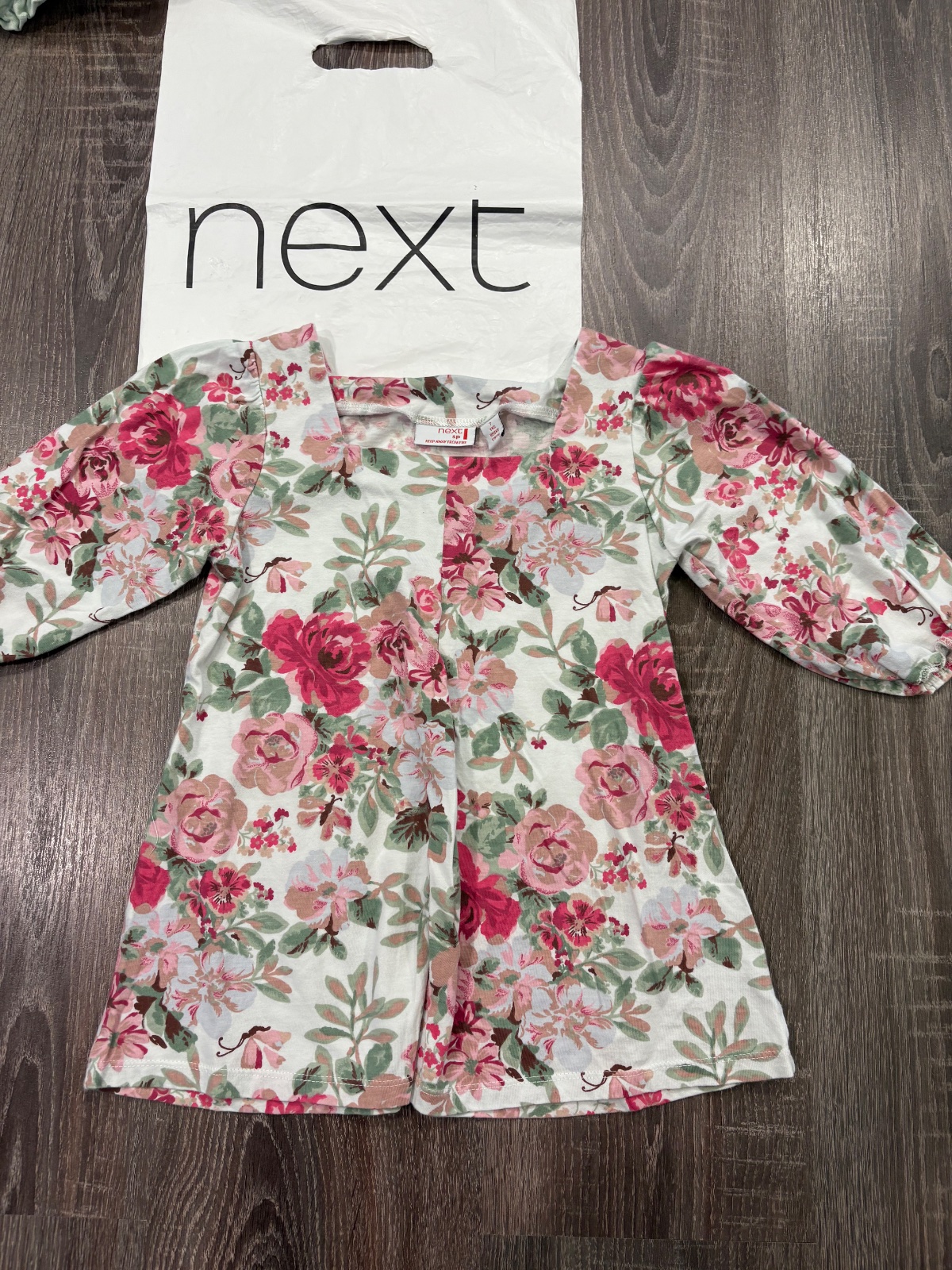 99.Next krasna kvetinova dievcenska tunika vo velkosti 7 rokov,dlzka je 49cm,dlzka rukava od krku je 35cm a sirka v podpazusi je od 35x2cm do 42x2cm