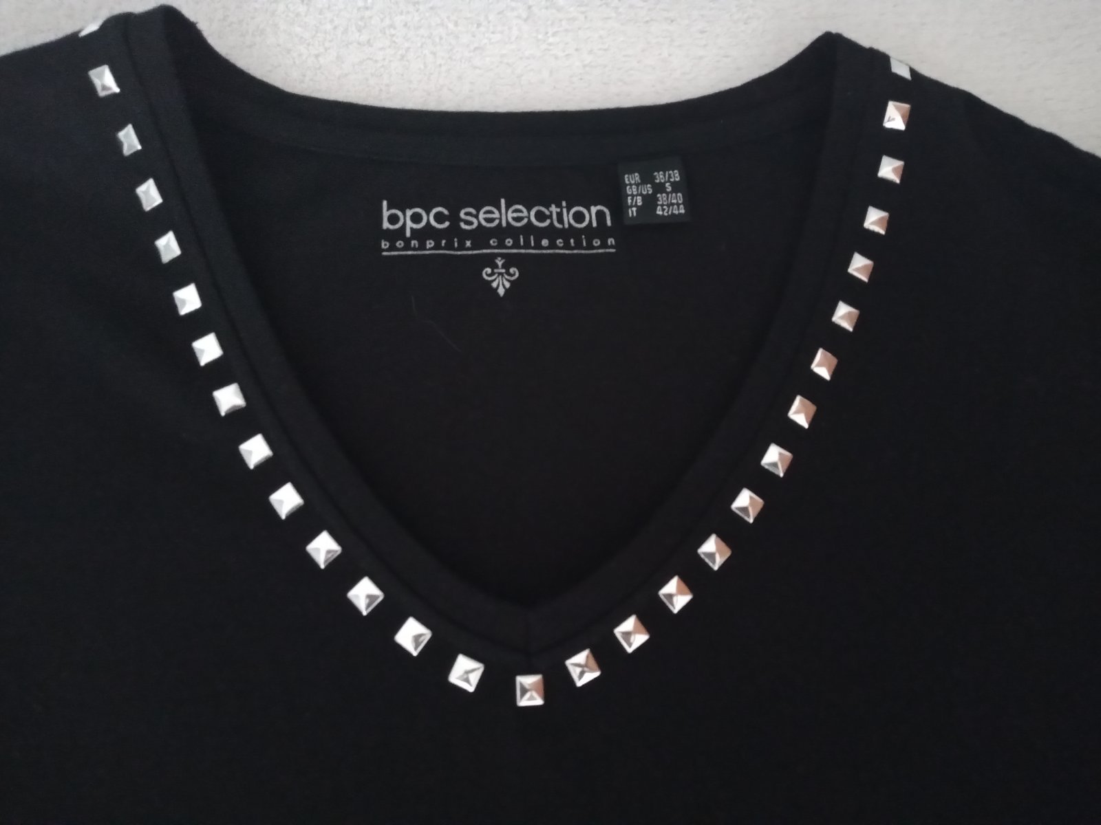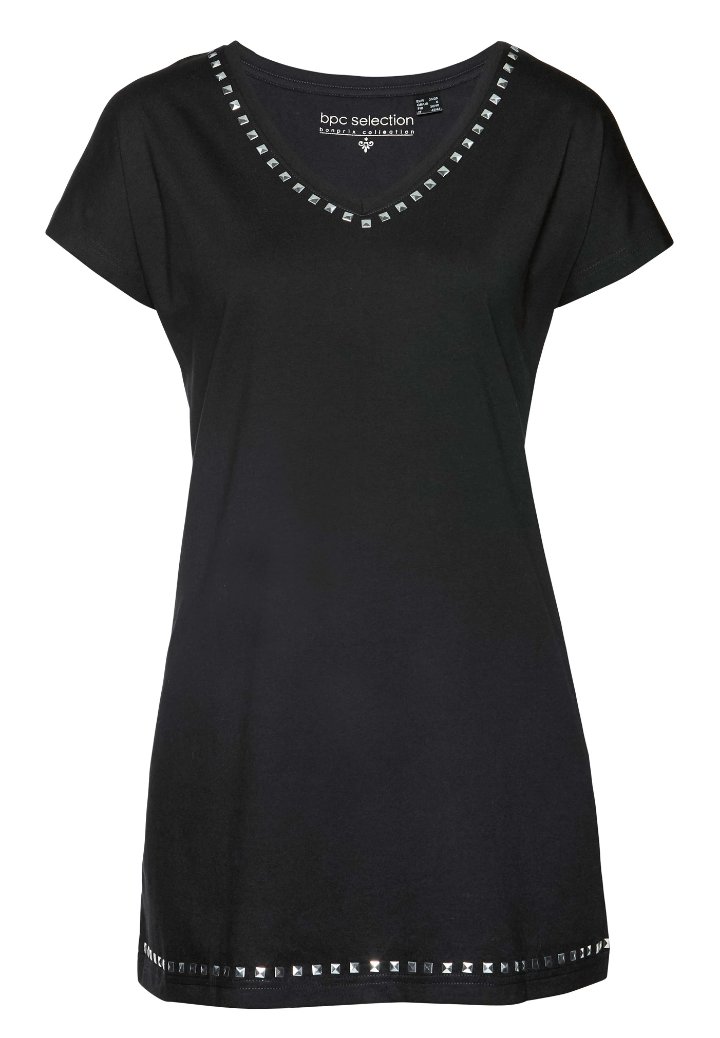 Veľmi pekné predĺžené tričko volného strihu, s kovovými aplikáciami, 1x oblečené, top bezchybný stav. Veľkosť 36/38. 100% bavlna.