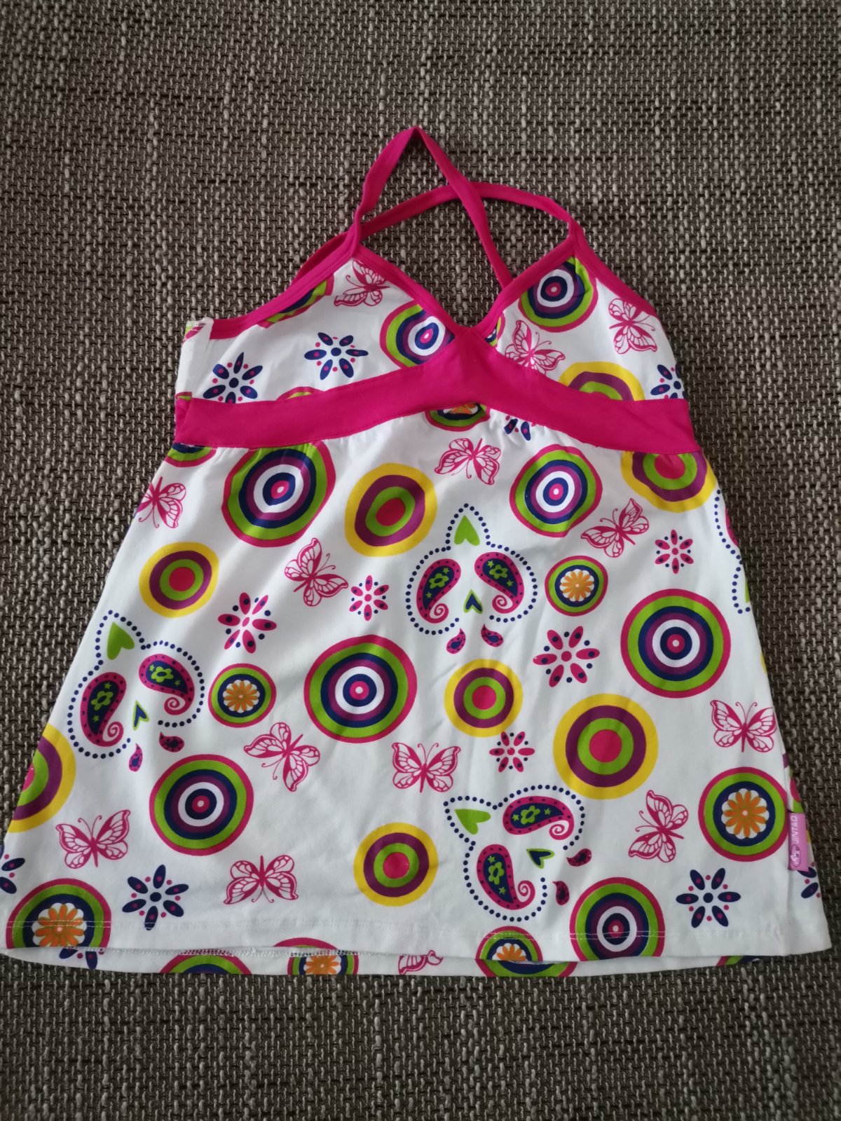 Celková dĺžka aj s ramienkami: 52cm, šírka pod pazuchami: 34cm. Na boku pod pazuchou je trošku popáraná nitka.