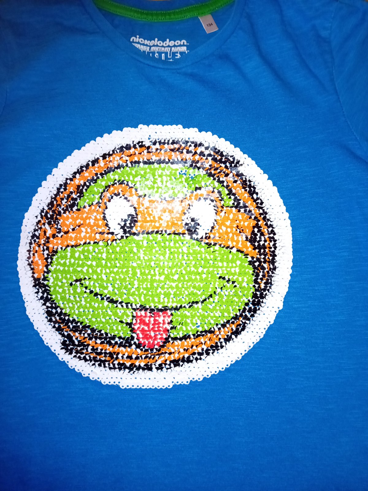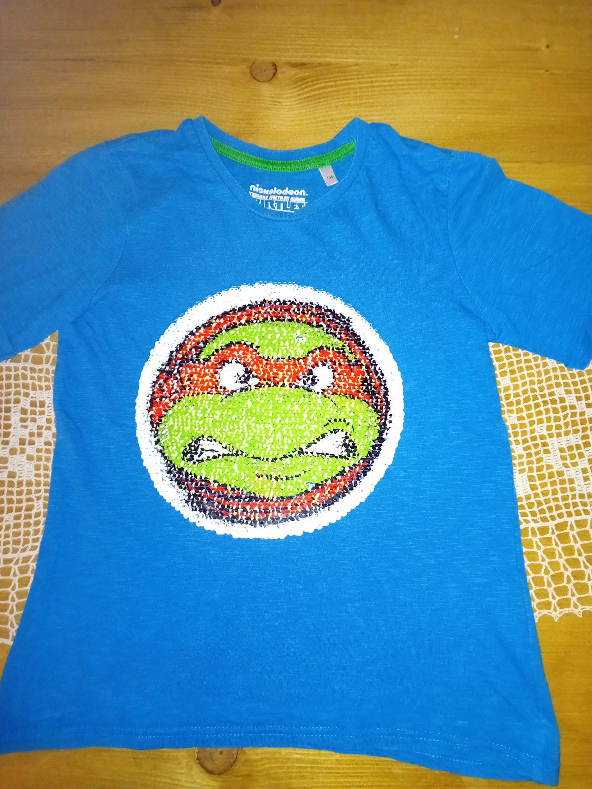 Krásne tričko s ninja korytnačkou, s premenlivým flitrovým obrázkom.