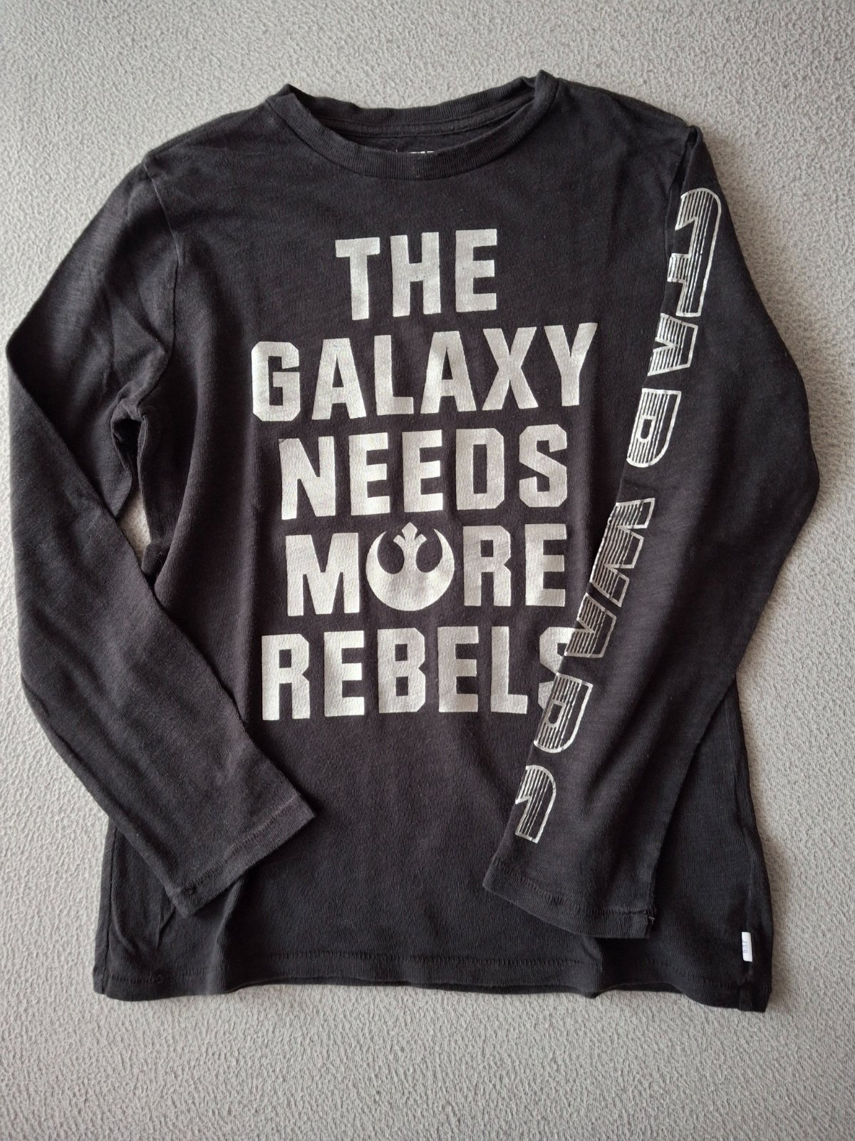 Čierne unisex veľkosť M, 130 na 8-9 rokov, " THE GALAXY NEEDS MORE REBELS " STAR WARS. nosený stav.