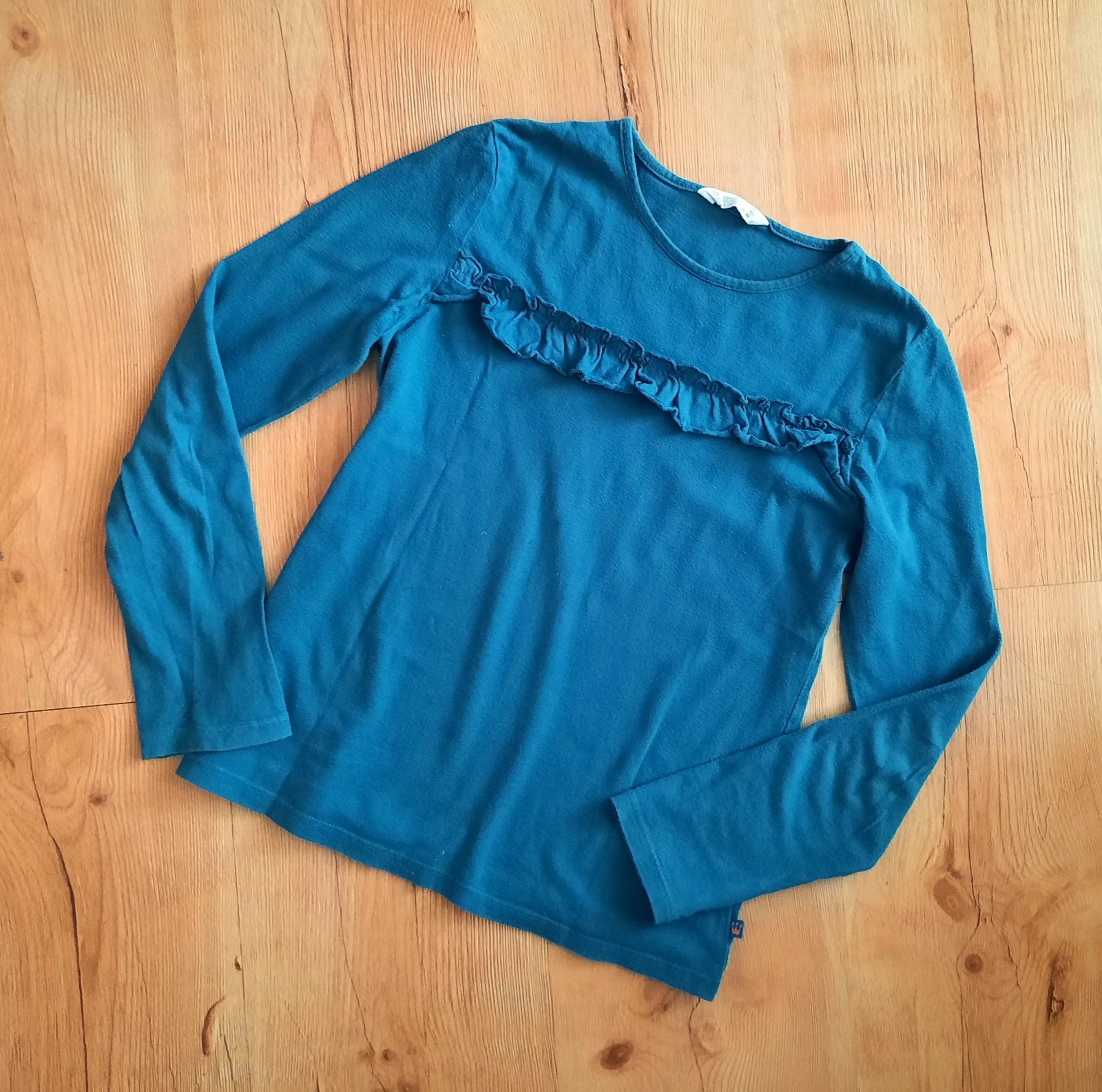 100% bavlna, dobrý stav, v.140/146, dĺžka 50cm, rukáv od krku 57cm, šírka popod pazuchy 38cm, krásna petrolejová farba