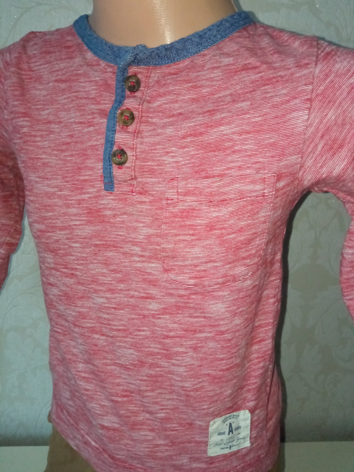 Chlapčenské tričko s roll up rukávom. Farba melírovaná,červeno-bielo-modrá. Zapínanie na 3 gombíky. Jedno vrecko na hrudi. Jemne elastické. Materiál 100%bavlna.