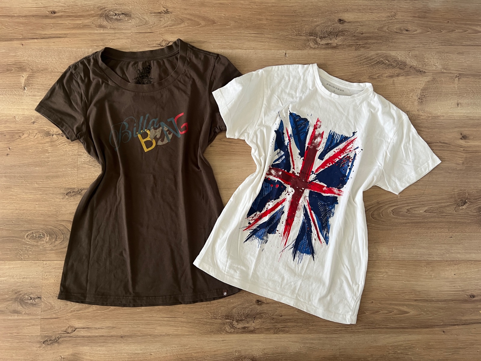 Billabong tričko a Primark tričko. Sadnú tak na S, možno aj S/M. Pekný stav. Cena 4 €.