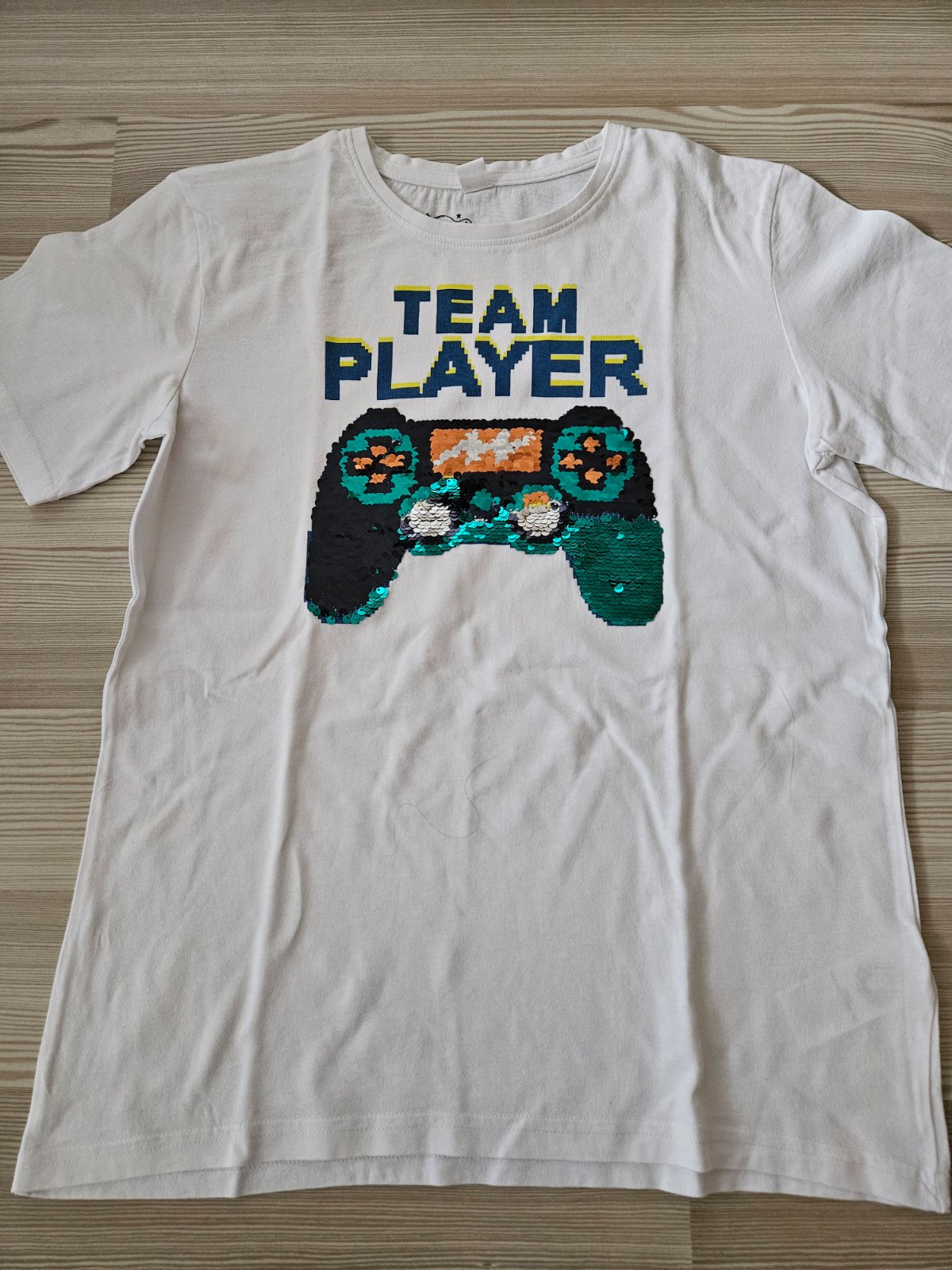 Tričko s flitrovou aplikáciou veľkosť 152-158. Vzadu na spodu niekoľko fliačikov (viď foto). V prípade záujmu písať e-mail blankagm1@gmail.com