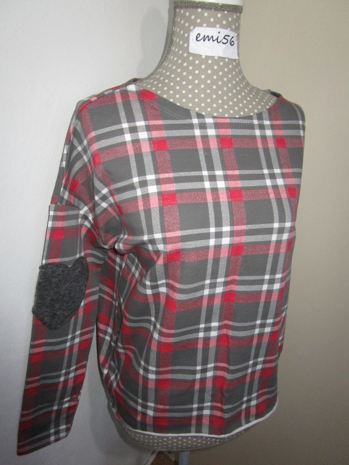 Rukávy zdobené dekoratívnym srdiečkom sivej farby, dajú sa vyhrnúť. Zadná časť je o trošku dlhšia než predná. Okrúhly výstrih. Pohodlný, ležérny strih. Mat. príjemný na nosenie. Zvnútra,ako mäkká teplakovina.
