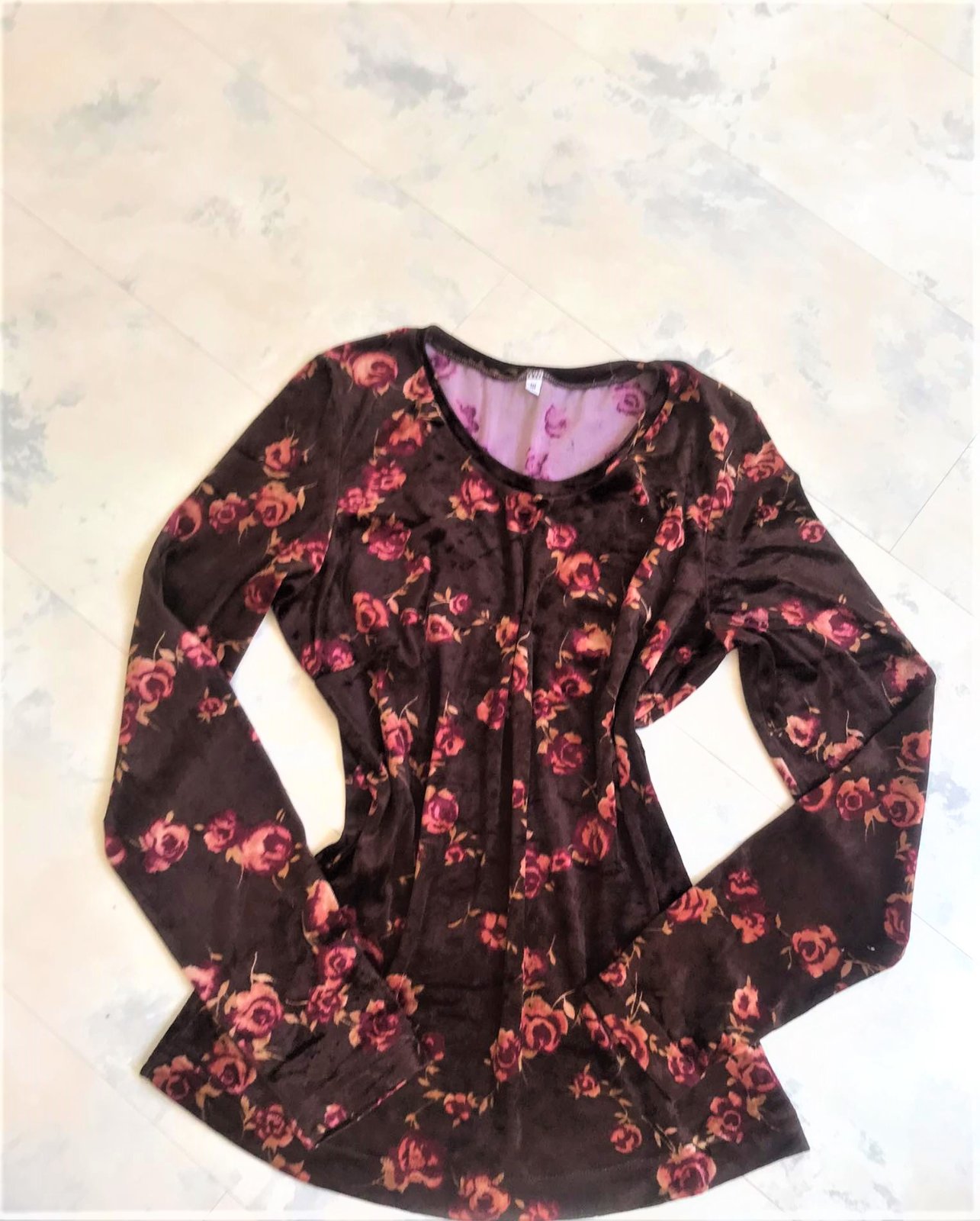 Kvetované tričko z elastického zamatu