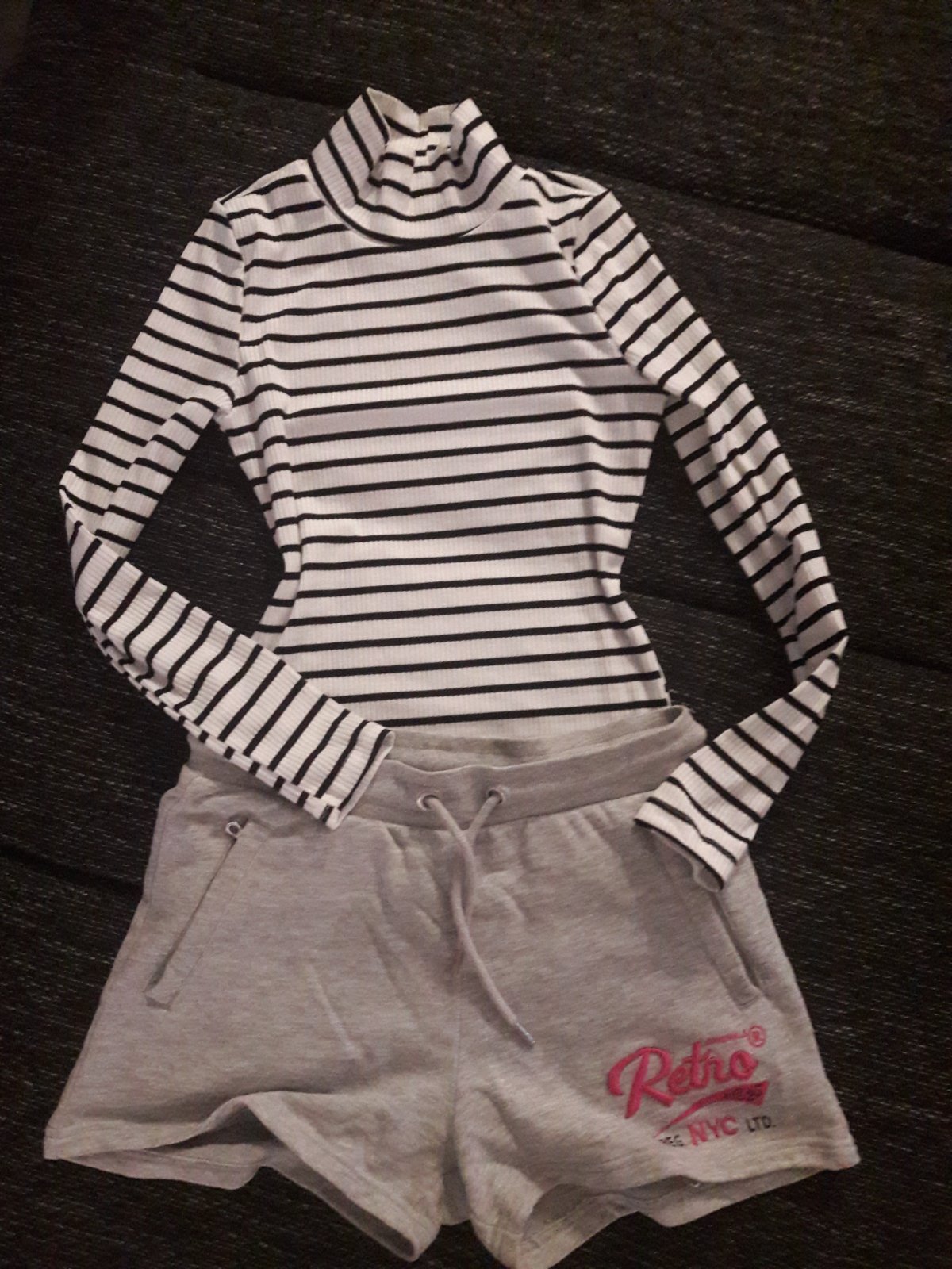 Dva rebrové elastické topy vpredu s ozdobou. Veľkosť XS.