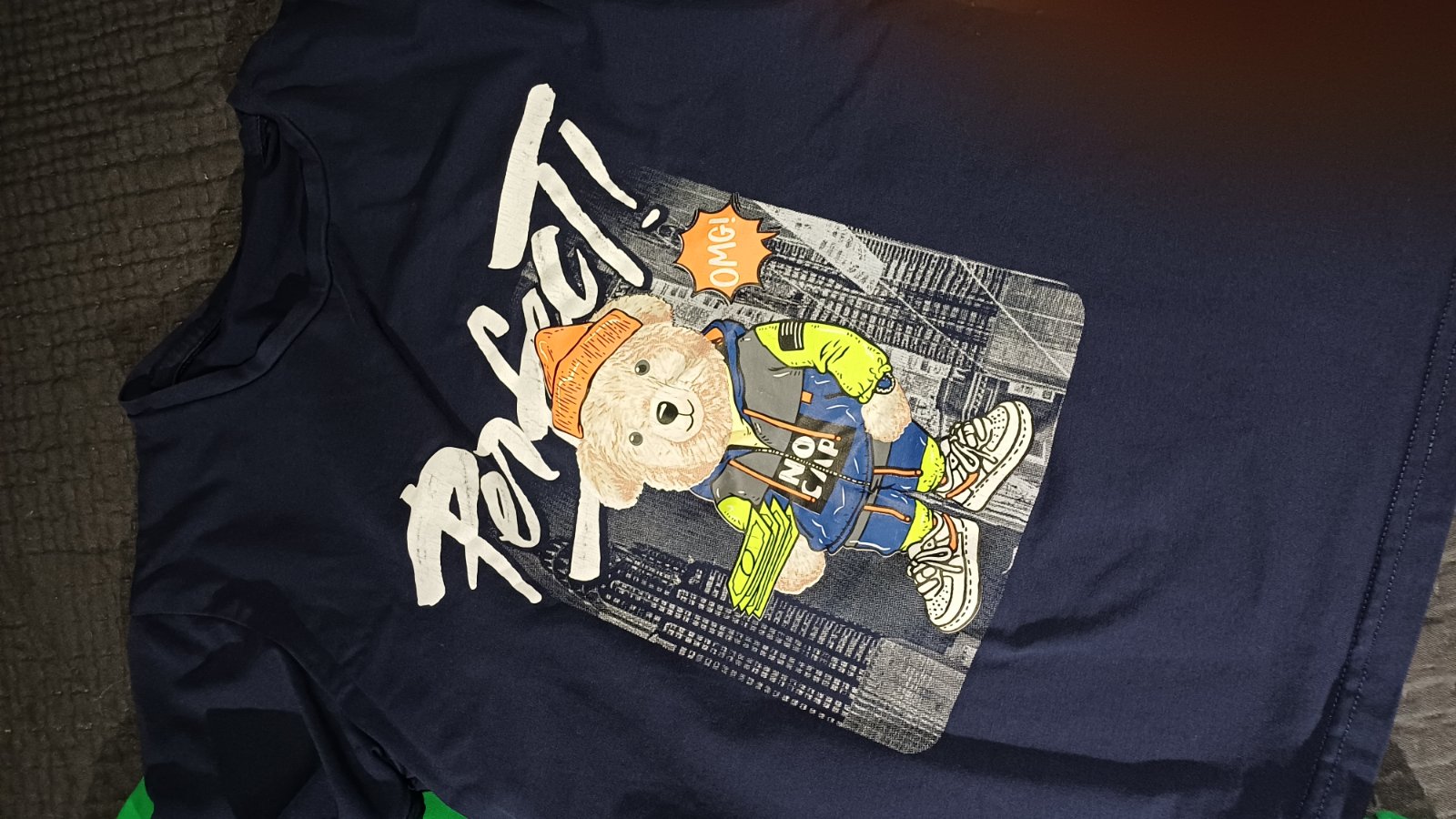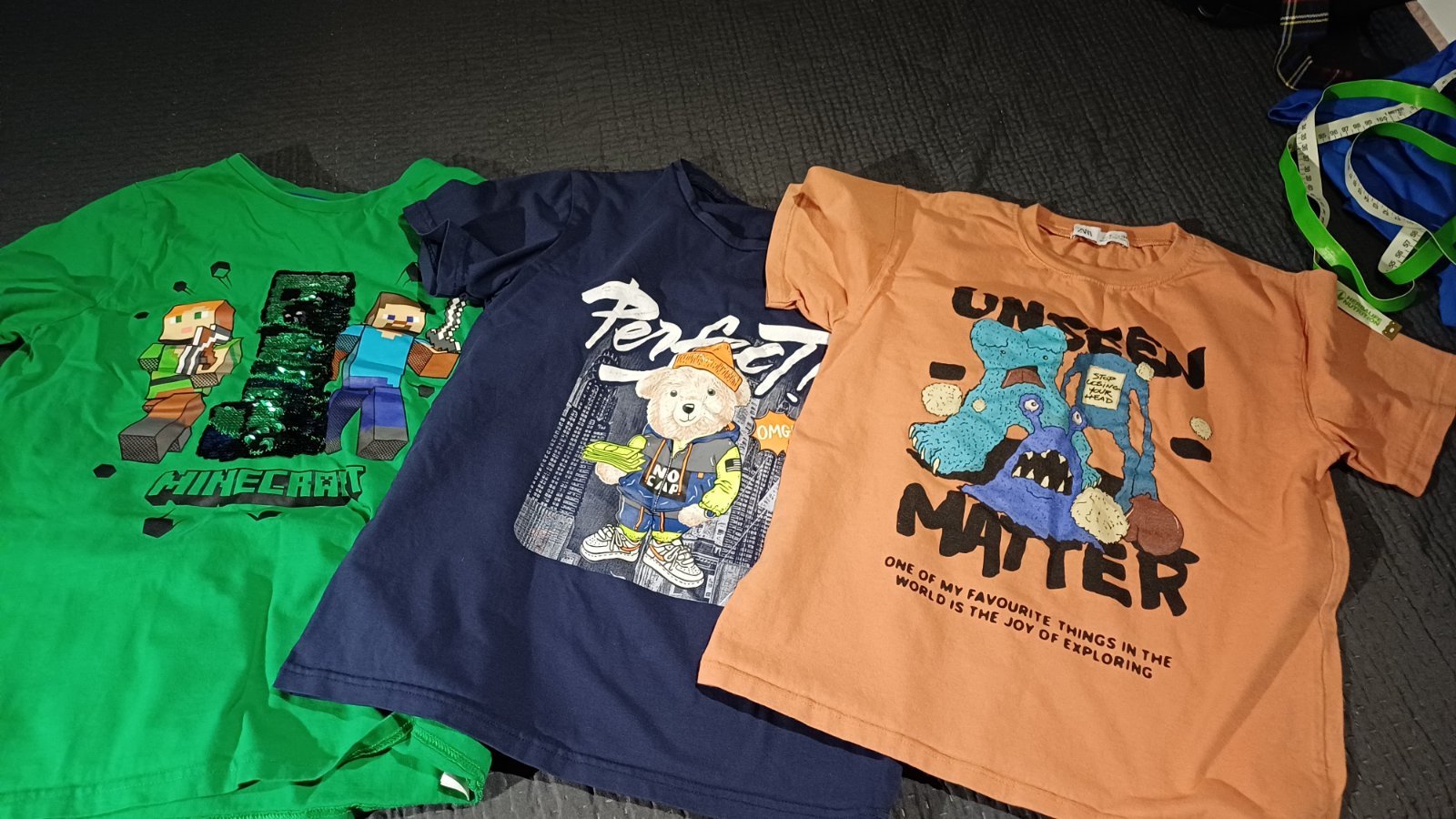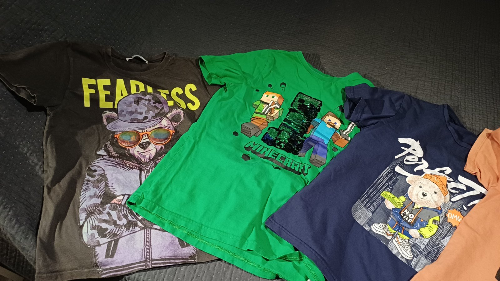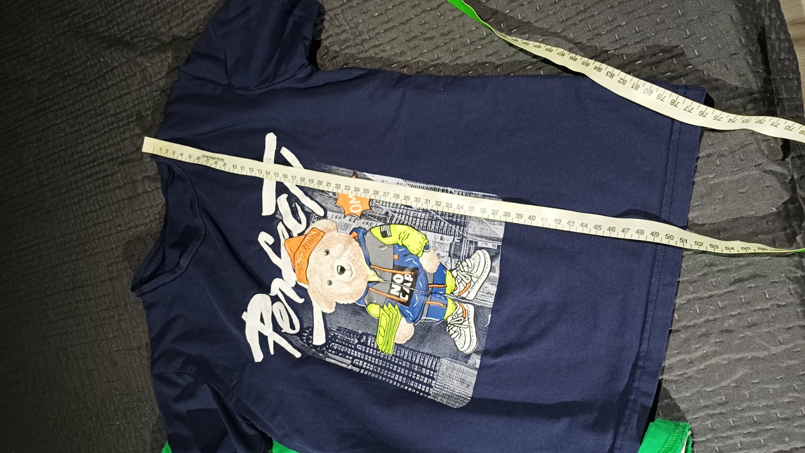 Tretie modré s medvedíkom, zachovalé. Dĺžka je 51 cm. Veľkosť 128, Cena je 2 eura.