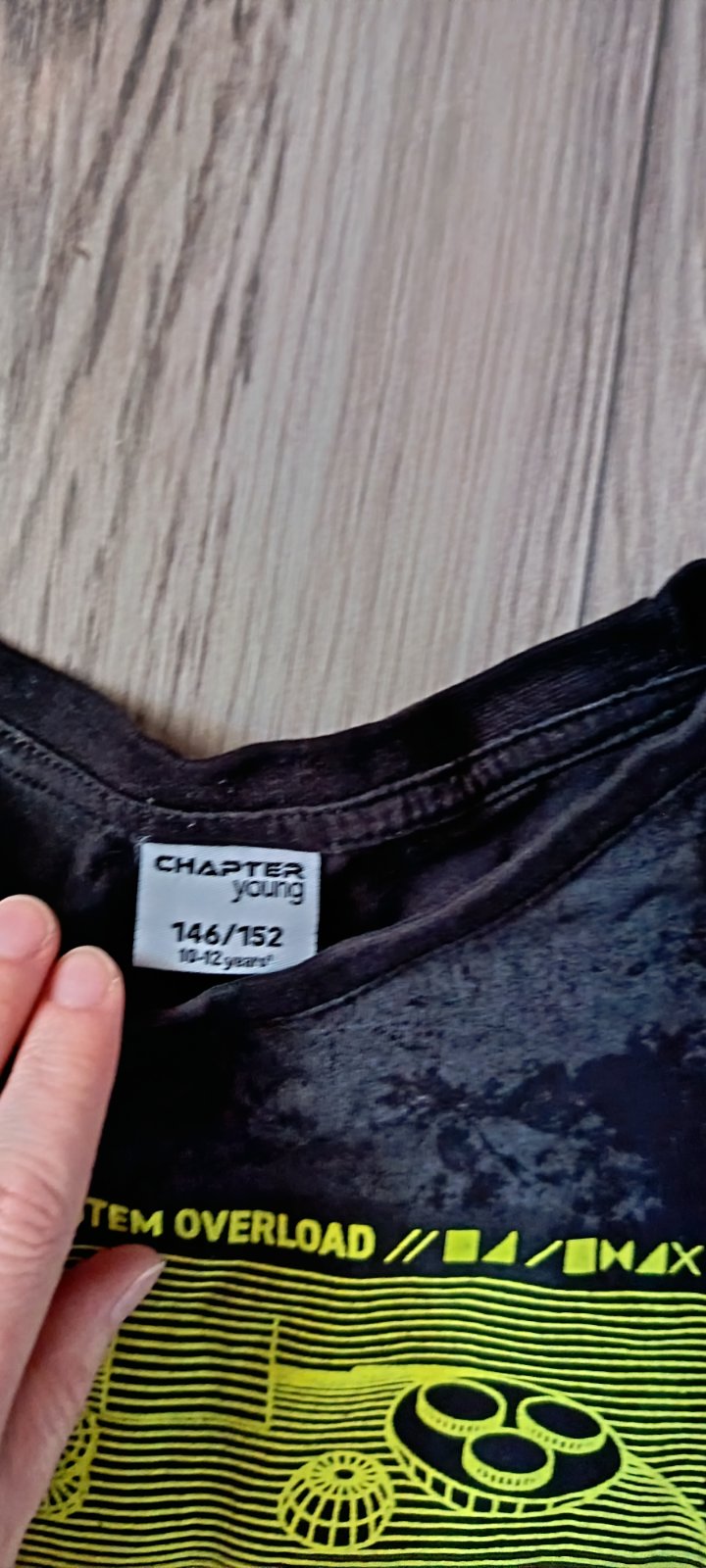 Nosené tričko v zachovalom stave. Značka Chapter Young. Veľkosť 146/152. Rozmery a stav na foto. Žmolky od prania.