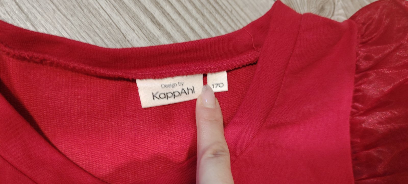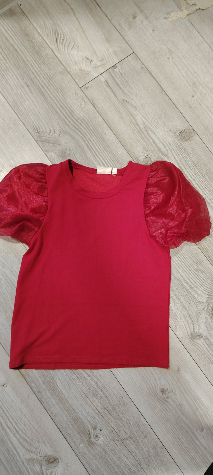 Predám krásne tričko KappAhl veľ.píše 170,ale sedí skôr na 158/164.Rukávy puff. Material je taká pevnejšia teplakovina.