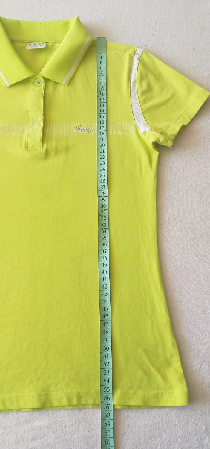 Dámske športové tričko s límčekom v žltozelenej farbe, oblečené 2x. Nepoškodené, top stav. Celková dĺžka a rozmery sú na foto. Pozrite celý môj bazár, pri kúpe viac vecí sa rada dohodnem na zľave.