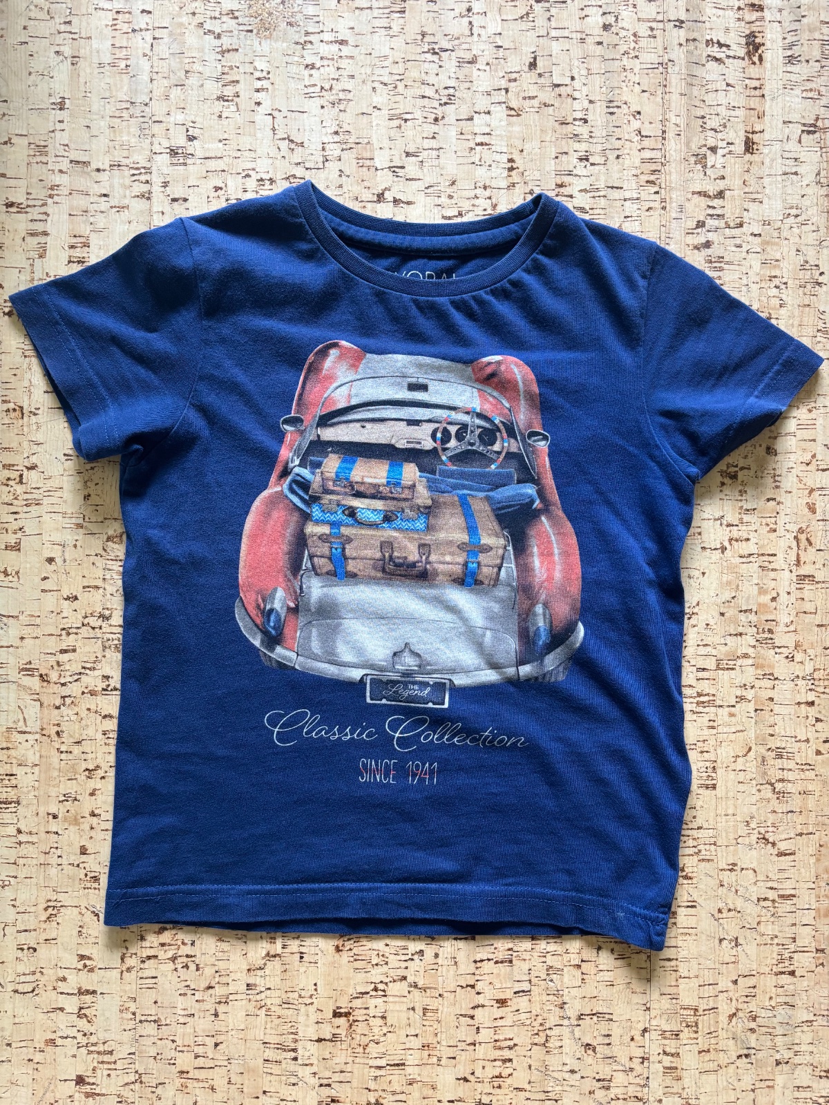 Veľmi pekný stav, akurát vzadu maličká dierka. Veľkosť píše 110, ale sedí skôr 104/110. Dĺžka tričká 41 cm.
