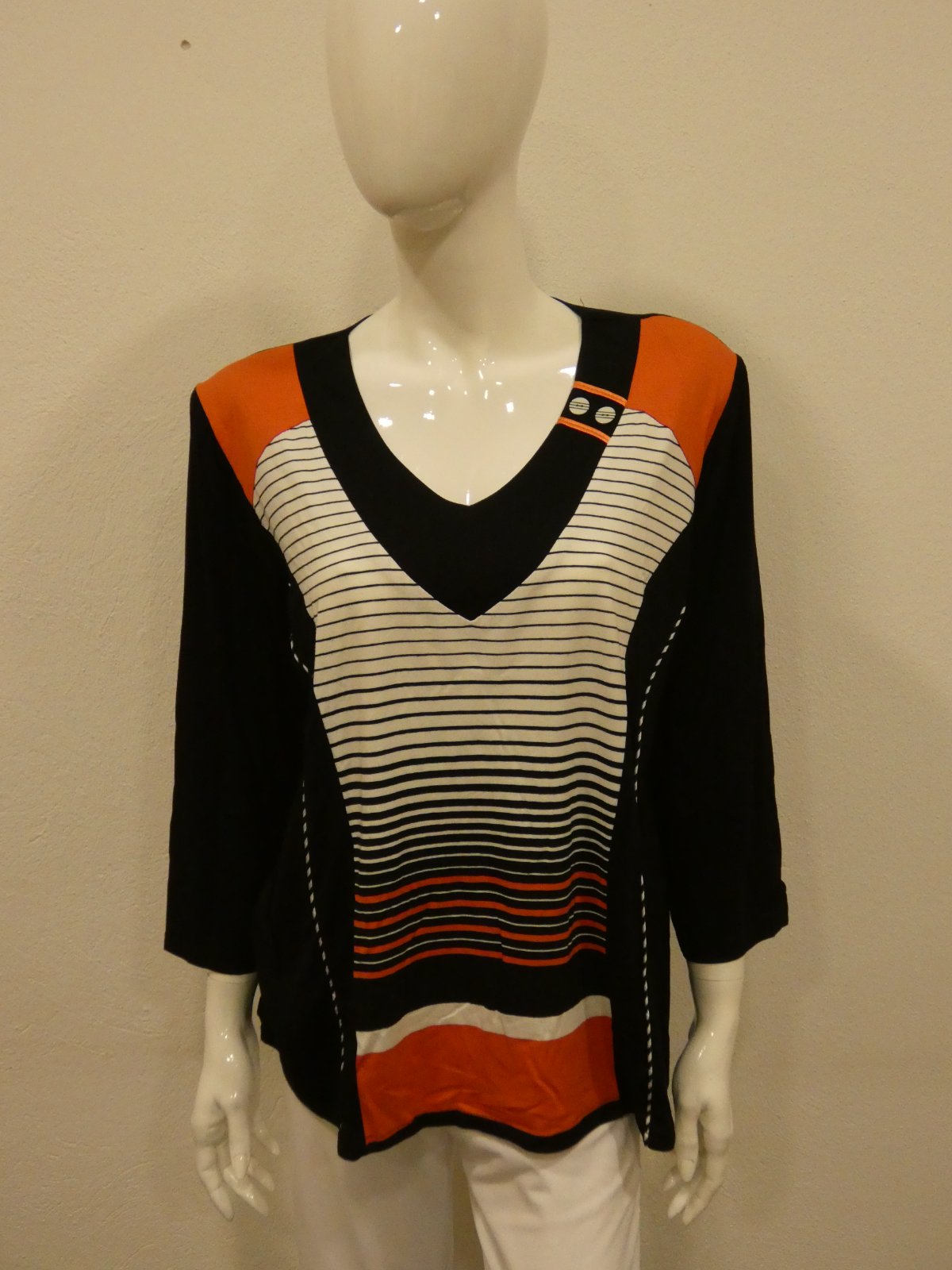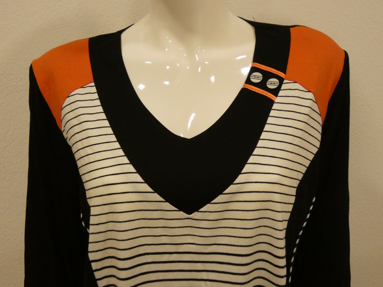 Nosený bez poškodenia , alebo žmolkov. Materiál 100% viskoza, je to veľmi príjemné na dotyk. Rozmery sú šírka cez prsia v nenatiahnutom stave 55 cm x 2 ,dlžka je 66 cm a dlžka rukáva je 46 cm.