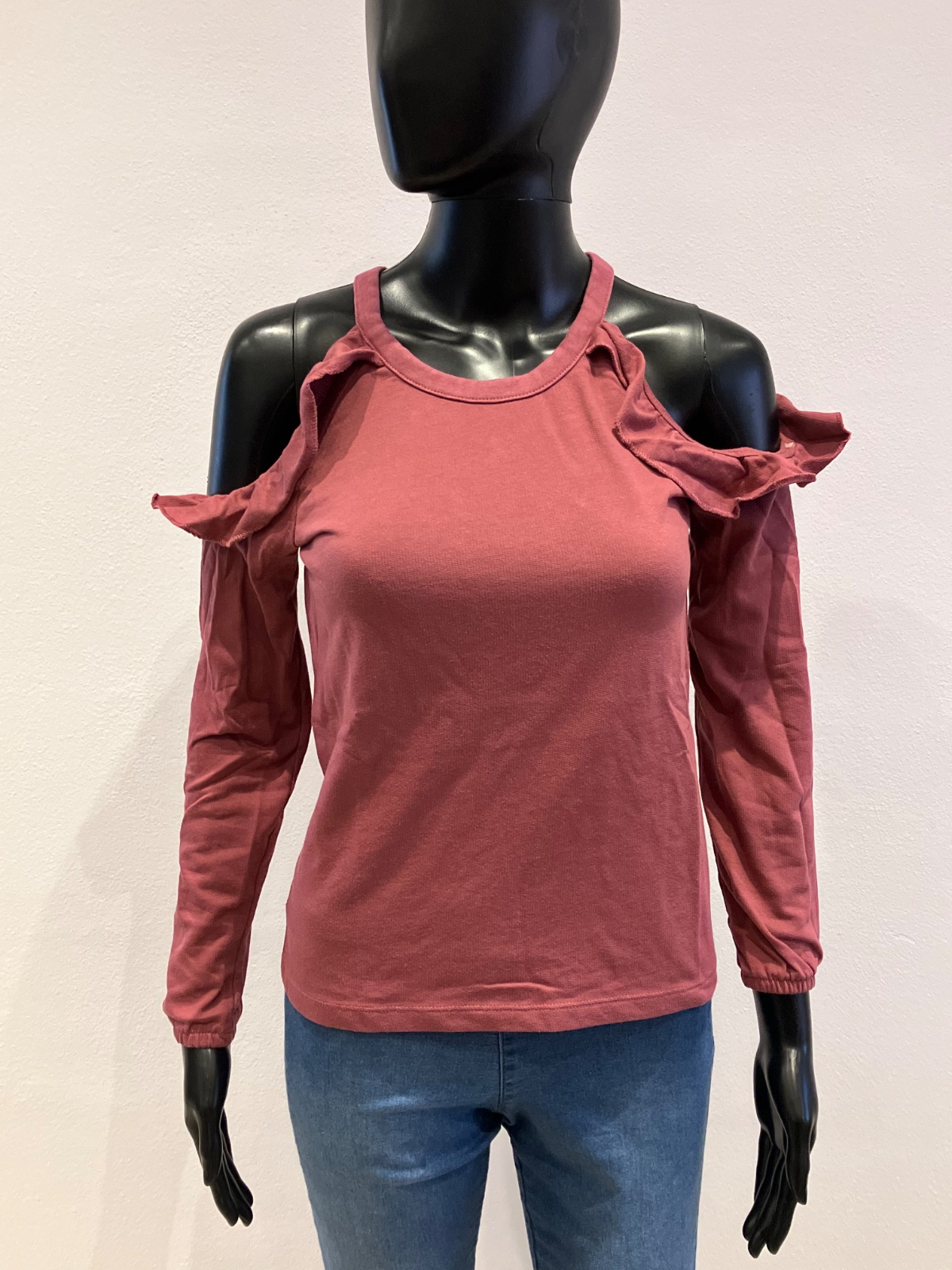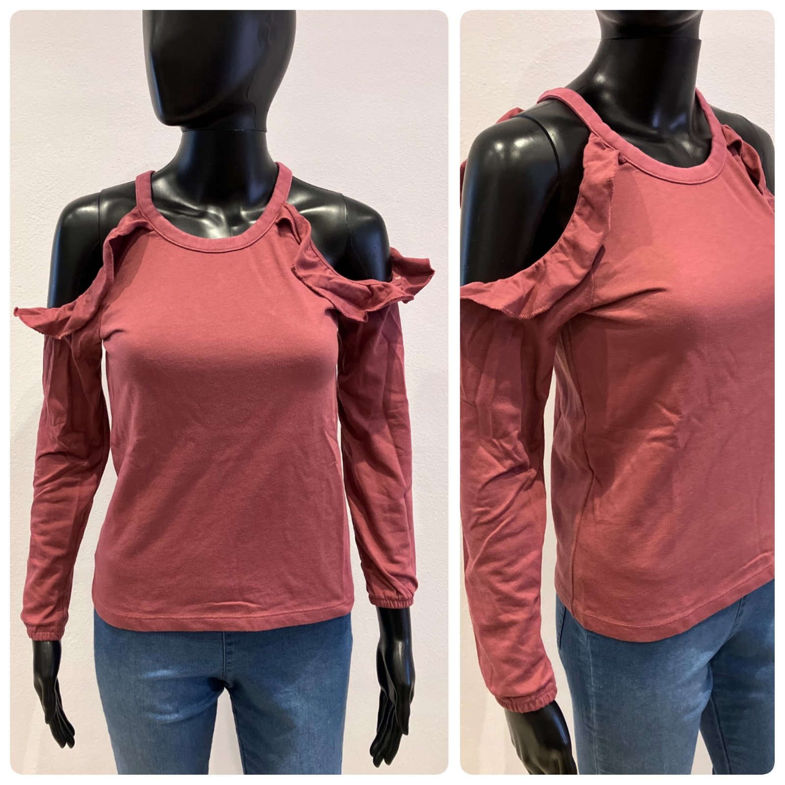 Dámske tričko s dlhým rukávom a volánmi, elastické.