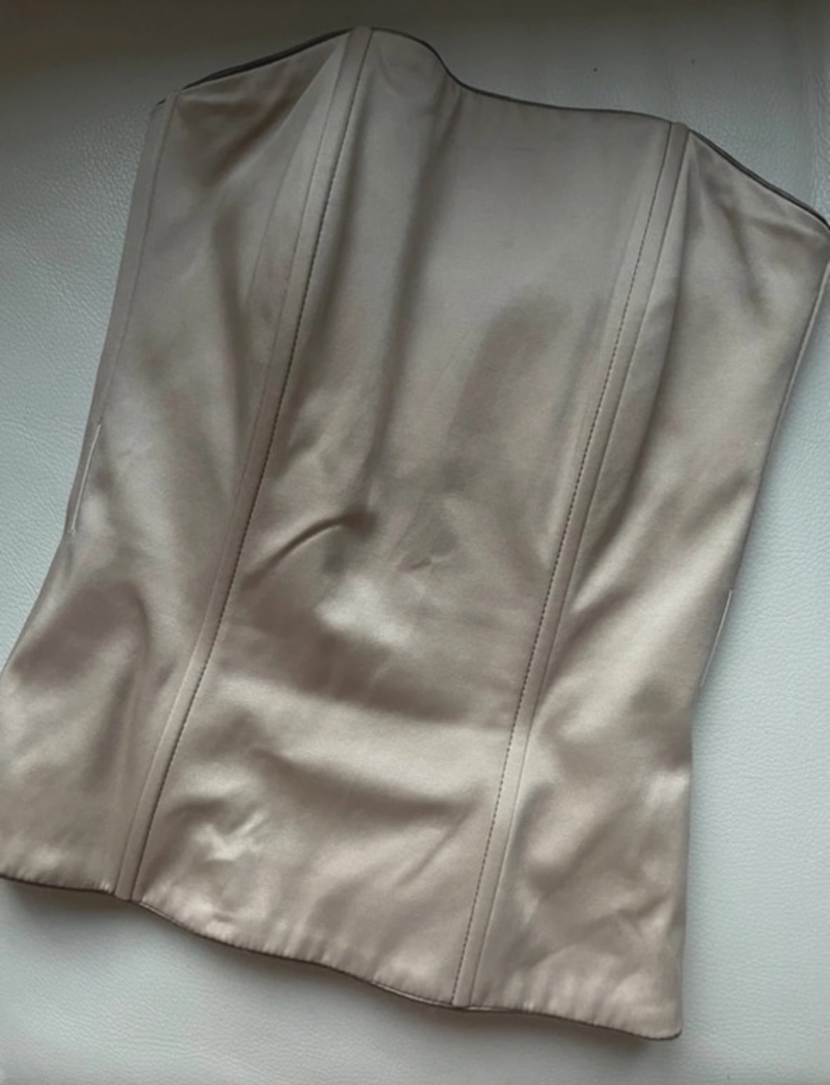 Korzetový top v odtieni champagne beige s decentným leskom a saténovou podšívkou krásne tvaruje postavu.